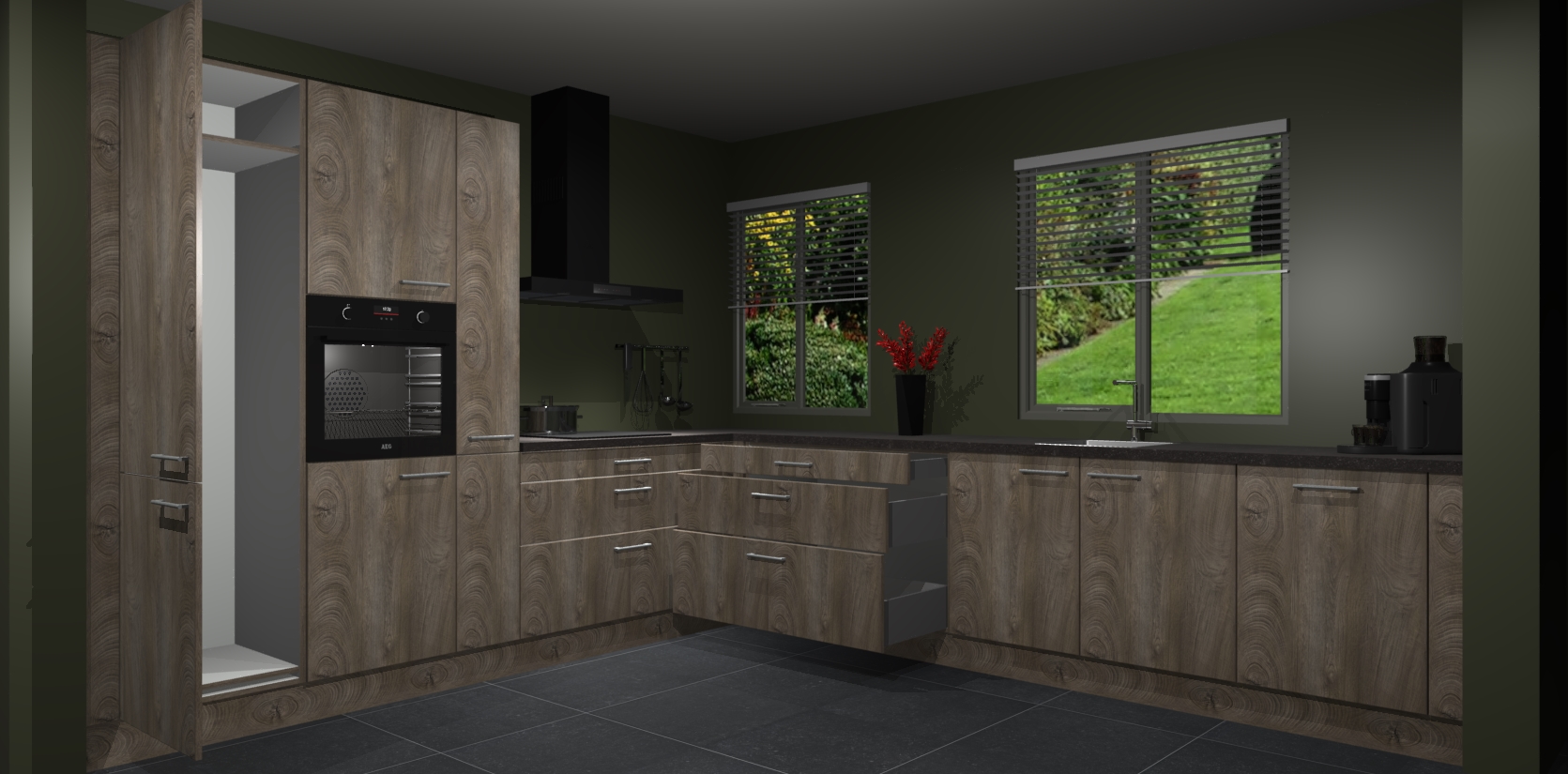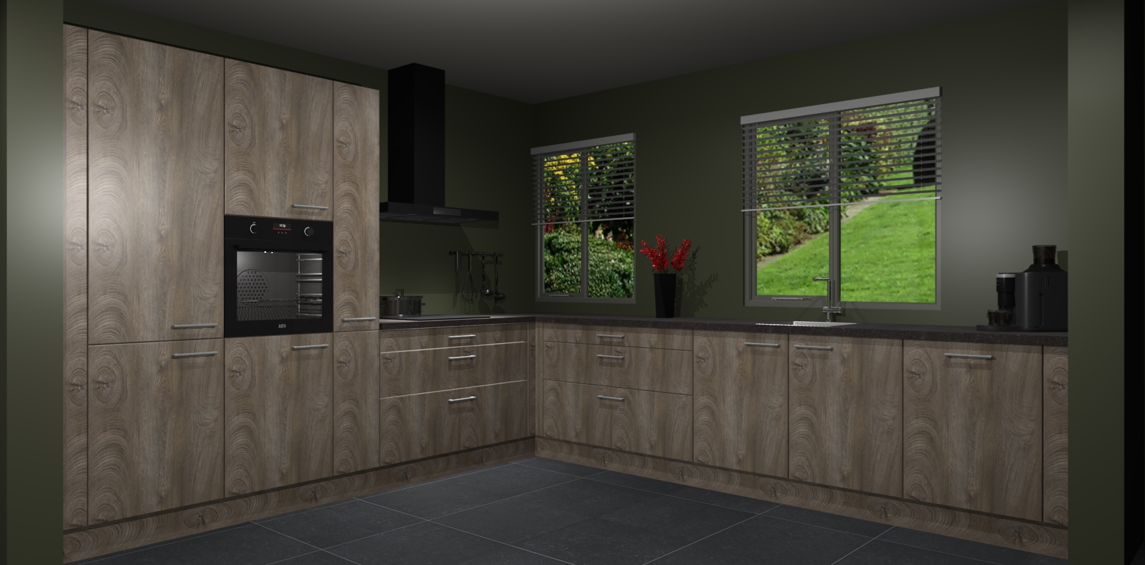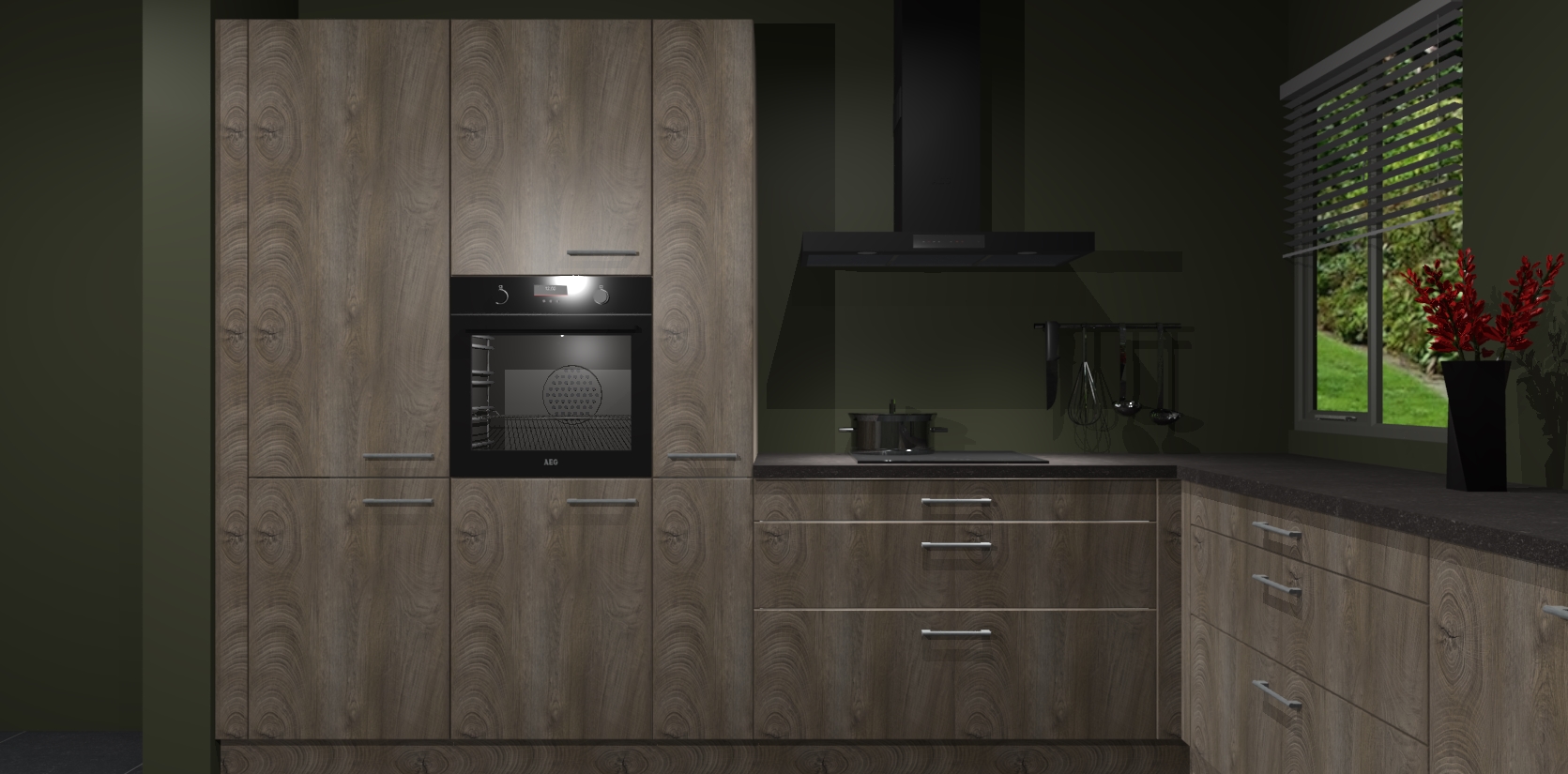 Welkom bij de Cantaro Eiken keuken Palermo. Deze prachtige keuken zal de komende jaren het middelpunt van de belangstelling in uw huis zijn. Uitgerust met vijf inbouwapparaten komt u nooit kookgereedschap tekort. Bovendien geeft de warme houtlook elke ruimte een uitnodigende en tijdloze uitstraling.