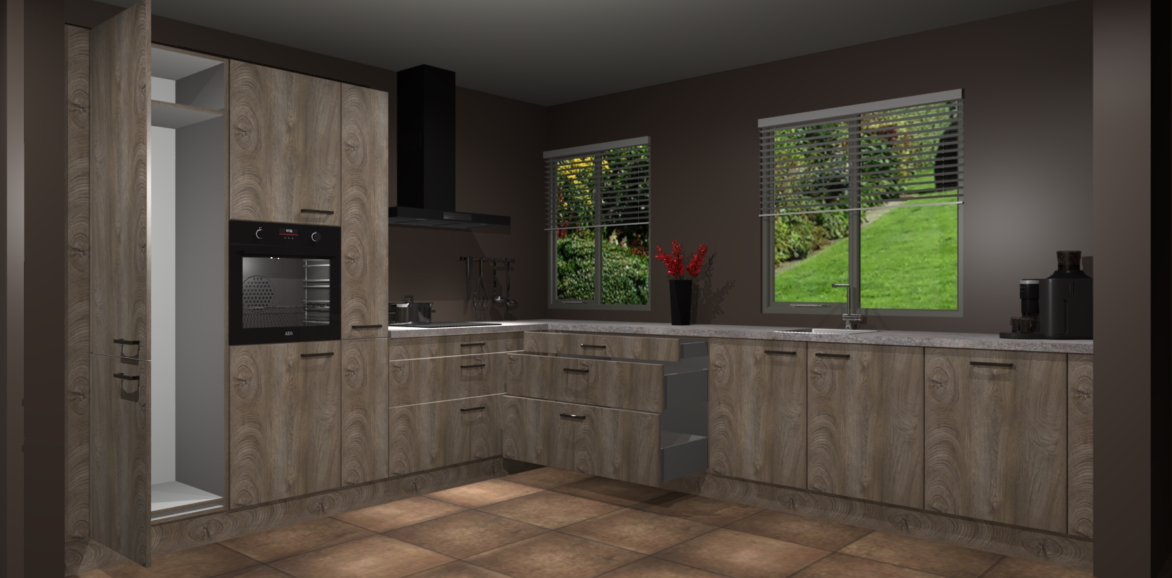Welkom bij de Cantaro Eiken keuken Palermo. Deze prachtige keuken zal de komende jaren het middelpunt van de belangstelling in uw huis zijn. Uitgerust met vijf inbouwapparaten komt u nooit kookgereedschap tekort. Bovendien geeft de warme houtlook elke ruimte een uitnodigende en tijdloze uitstraling.
