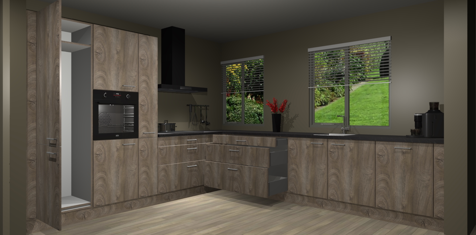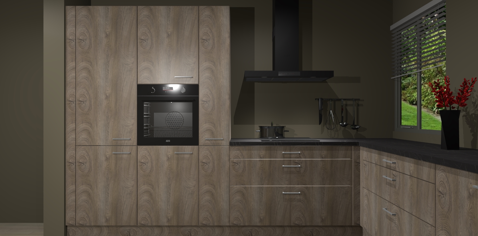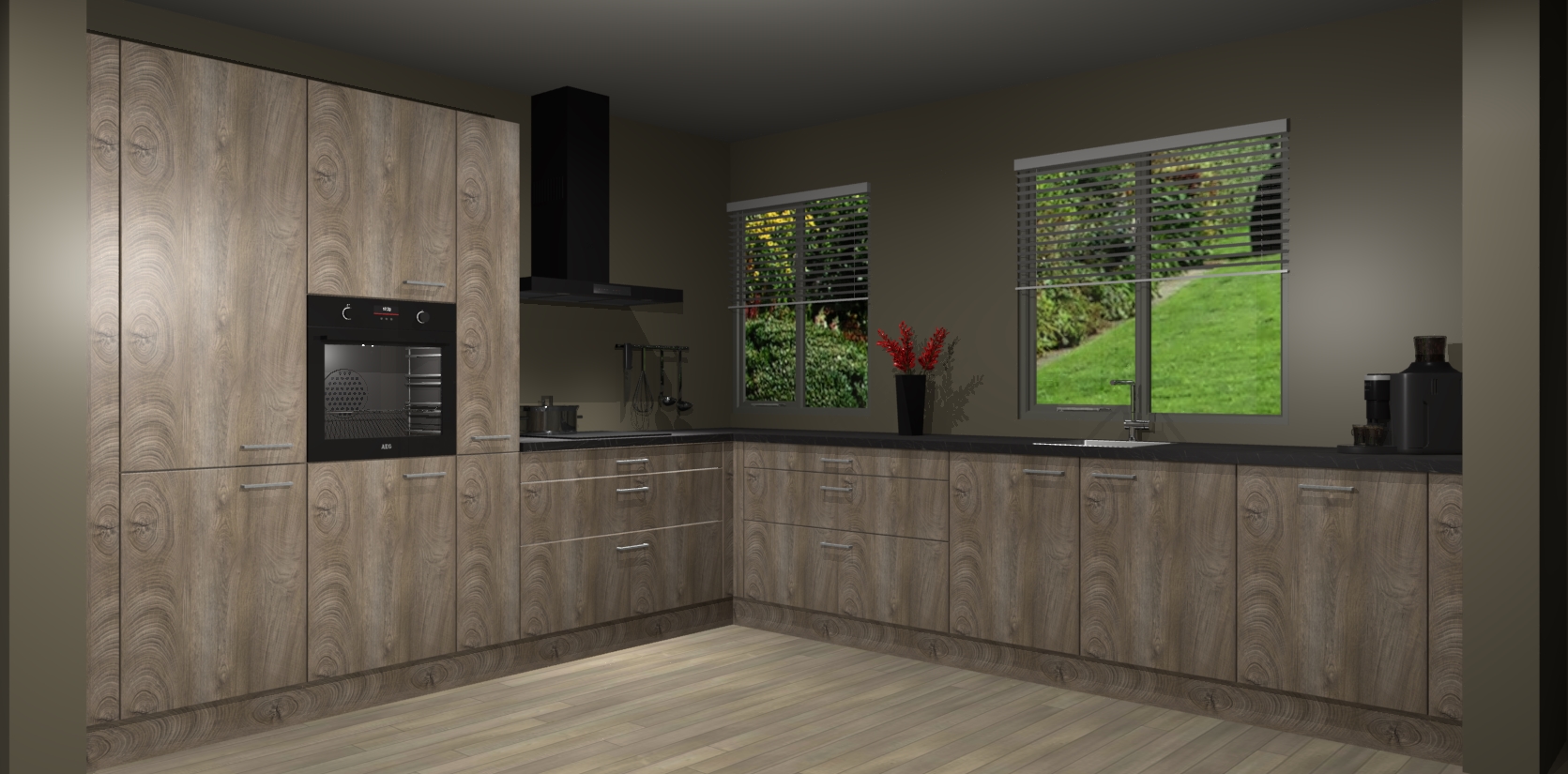 Welkom bij de Cantaro Eiken keuken Palermo. Deze prachtige keuken zal de komende jaren het middelpunt van de belangstelling in uw huis zijn. Uitgerust met vijf inbouwapparaten komt u nooit kookgereedschap tekort. Bovendien geeft de warme houtlook elke ruimte een uitnodigende en tijdloze uitstraling.
