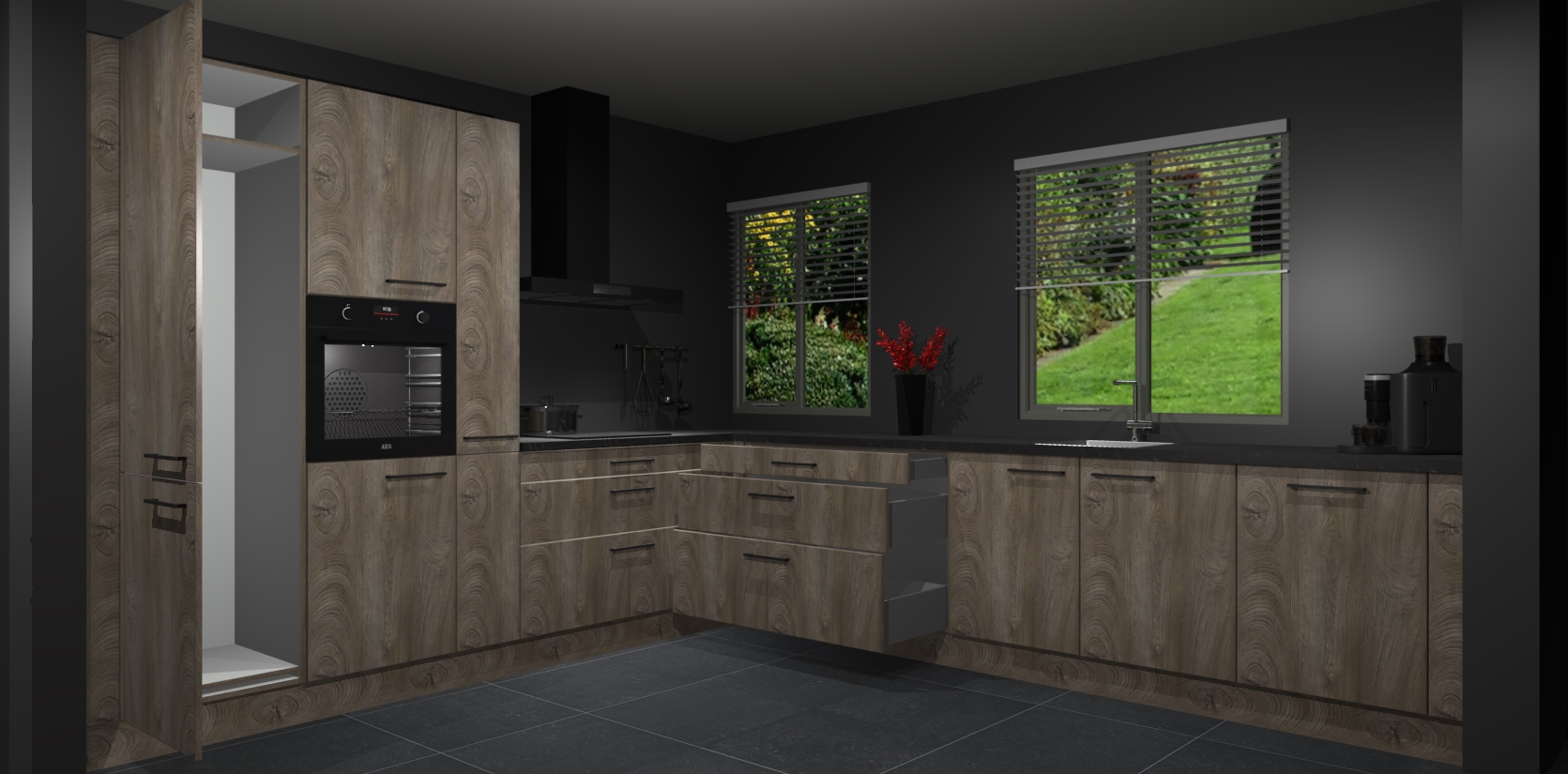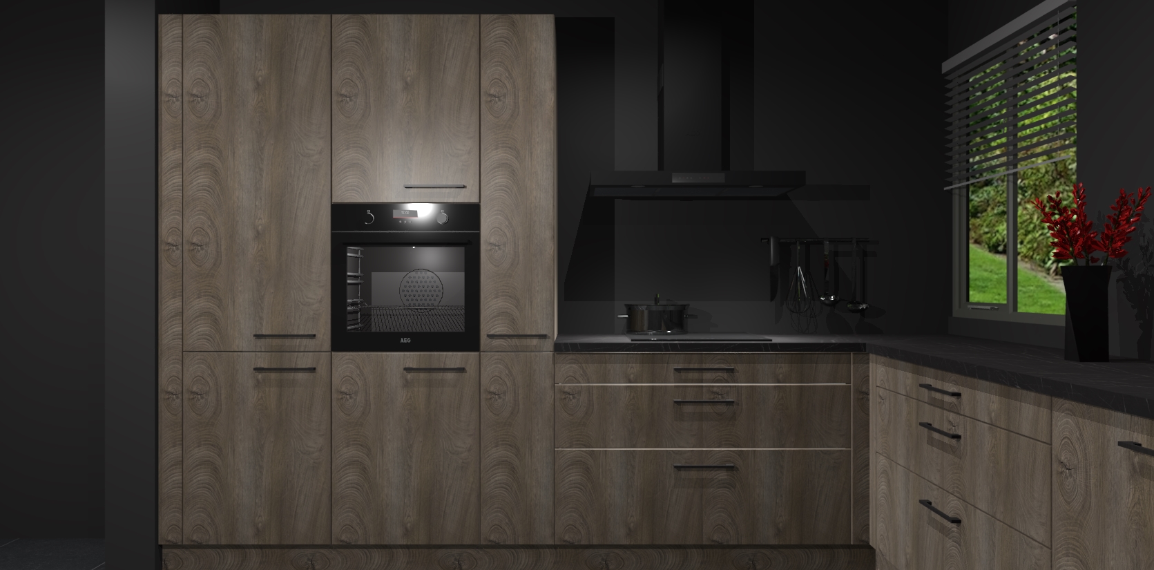 Welkom bij de Cantaro Eiken keuken Palermo. Deze prachtige keuken zal de komende jaren het middelpunt van de belangstelling in uw huis zijn. Uitgerust met vijf inbouwapparaten komt u nooit kookgereedschap tekort. Bovendien geeft de warme houtlook elke ruimte een uitnodigende en tijdloze uitstraling.