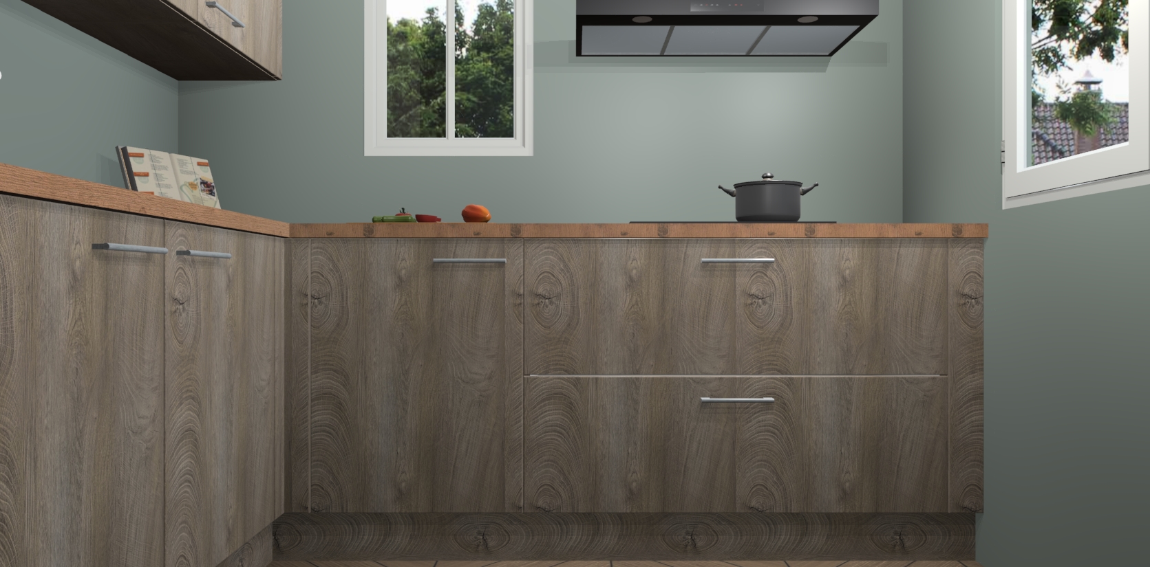 Inclusief plinten, stelpoten en werkblad