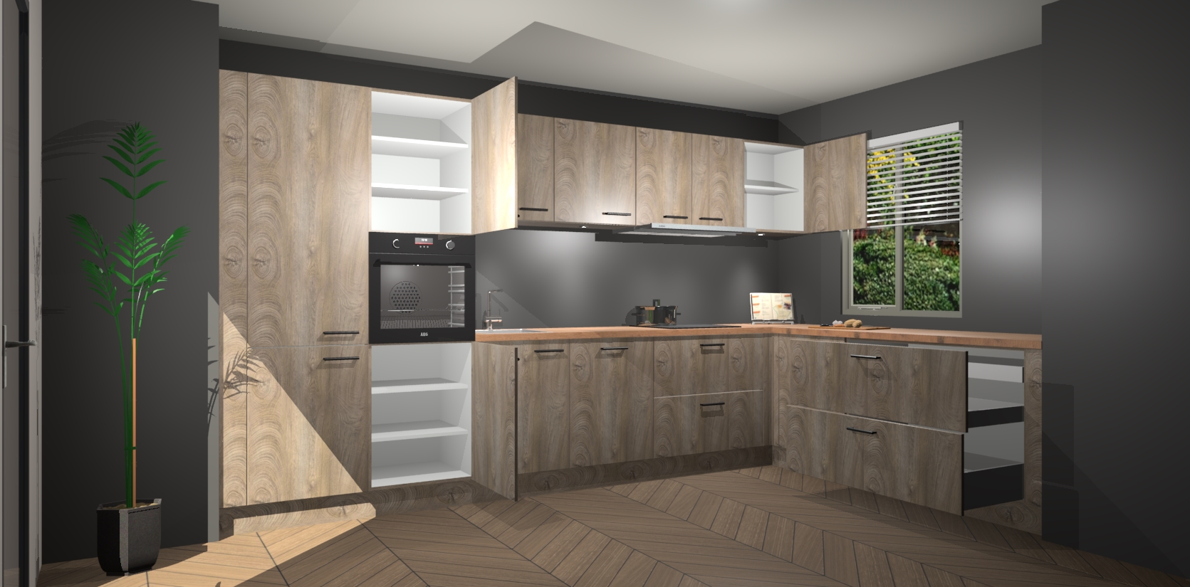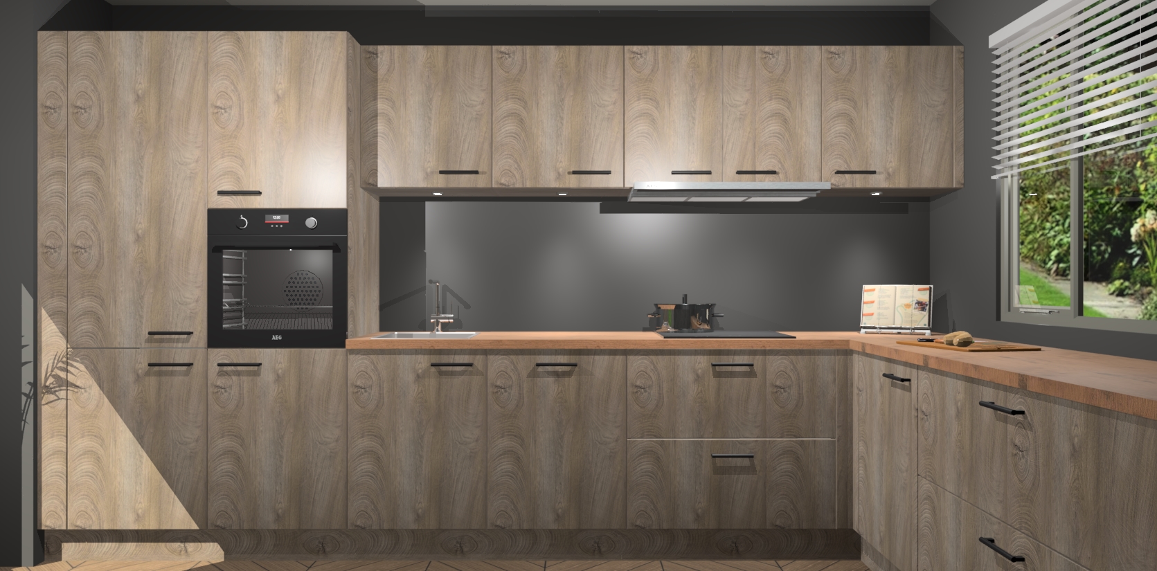 Verwelkom de natuurlijke warmte van de Cantaro Eiken keuken Petten in uw huis. Deze prachtige hoekkeuken met zijn moderne design en warme houten look geeft u meer dan genoeg opbergruimte om uw comfortabel te voelen in uw keuken. Geniet van soft-close deuren die al uw gasten het gevoel zullen geven dat ze zich in een luxueuze ruimte bevinden.