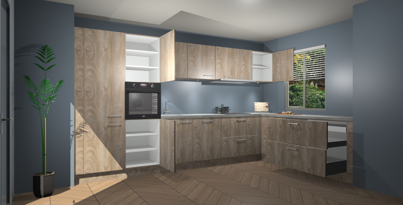 Verwelkom de natuurlijke warmte van de Cantaro Eiken keuken Petten in uw huis. Deze prachtige hoekkeuken met zijn moderne design en warme houten look geeft u meer dan genoeg opbergruimte om uw comfortabel te voelen in uw keuken. Geniet van soft-close deuren die al uw gasten het gevoel zullen geven dat ze zich in een luxueuze ruimte bevinden.