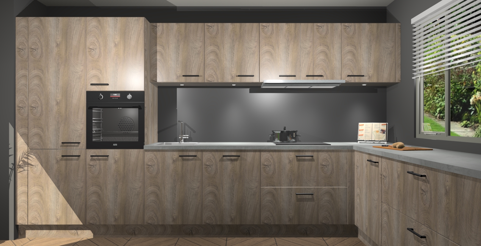 Uw droom van een sprookje binnenshuis is nu binnen handbereik met 5 inbouwapparaten in dit complete pakket: een oven, inductiekookplaat, afzuigkap, vaatwasser en koelkast! Haal deze geraffineerde en warme sfeer nu sneller in huis dan normaal - wij garanderen een snelle levering binnen 7 weken.