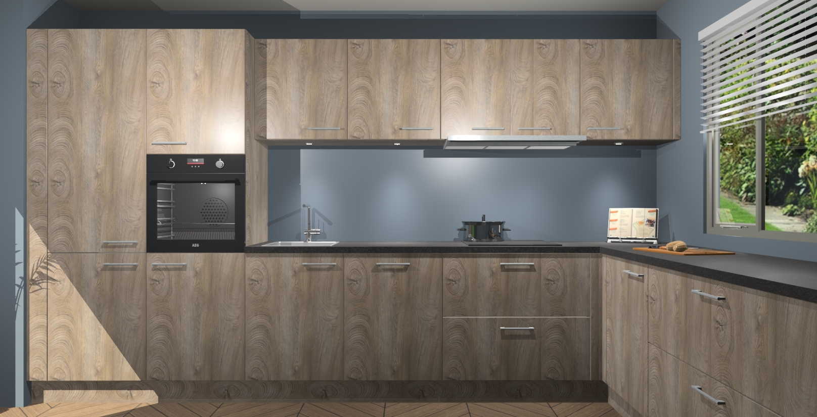 Uw droom van een sprookje binnenshuis is nu binnen handbereik met 5 inbouwapparaten in dit complete pakket: een oven, inductiekookplaat, afzuigkap, vaatwasser en koelkast! Haal deze geraffineerde en warme sfeer nu sneller in huis dan normaal - wij garanderen een snelle levering binnen 7 weken.