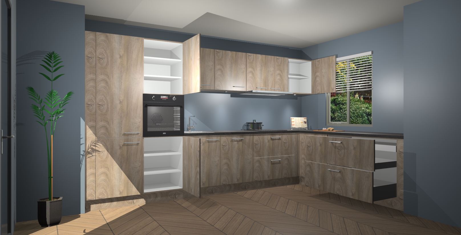 Inclusief plinten, stelpoten en werkblad