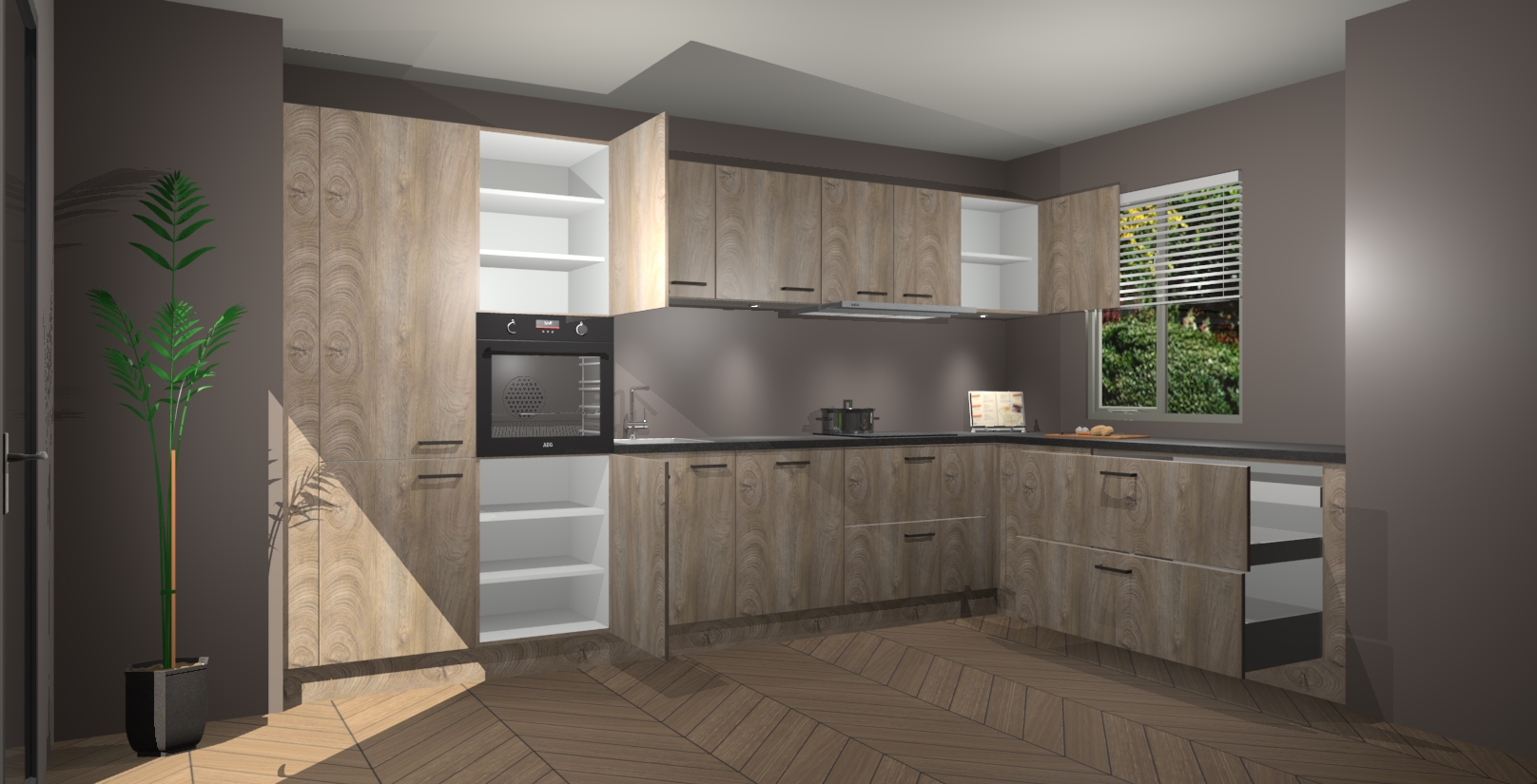 Verwelkom de natuurlijke warmte van de Cantaro Eiken keuken Petten in uw huis. Deze prachtige hoekkeuken met zijn moderne design en warme houten look geeft u meer dan genoeg opbergruimte om uw comfortabel te voelen in uw keuken. Geniet van soft-close deuren die al uw gasten het gevoel zullen geven dat ze zich in een luxueuze ruimte bevinden.