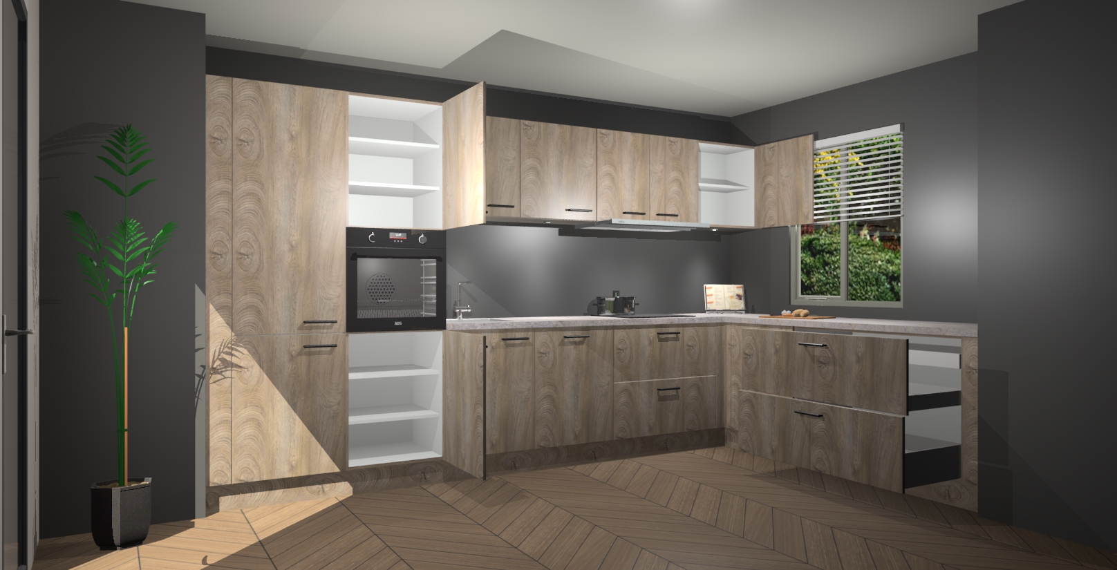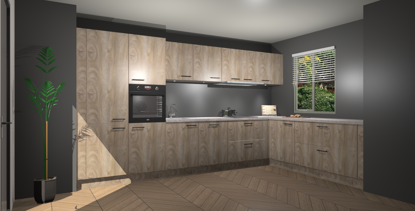 Verwelkom de natuurlijke warmte van de Cantaro Eiken keuken Petten in uw huis. Deze prachtige hoekkeuken met zijn moderne design en warme houten look geeft u meer dan genoeg opbergruimte om uw comfortabel te voelen in uw keuken. Geniet van soft-close deuren die al uw gasten het gevoel zullen geven dat ze zich in een luxueuze ruimte bevinden.