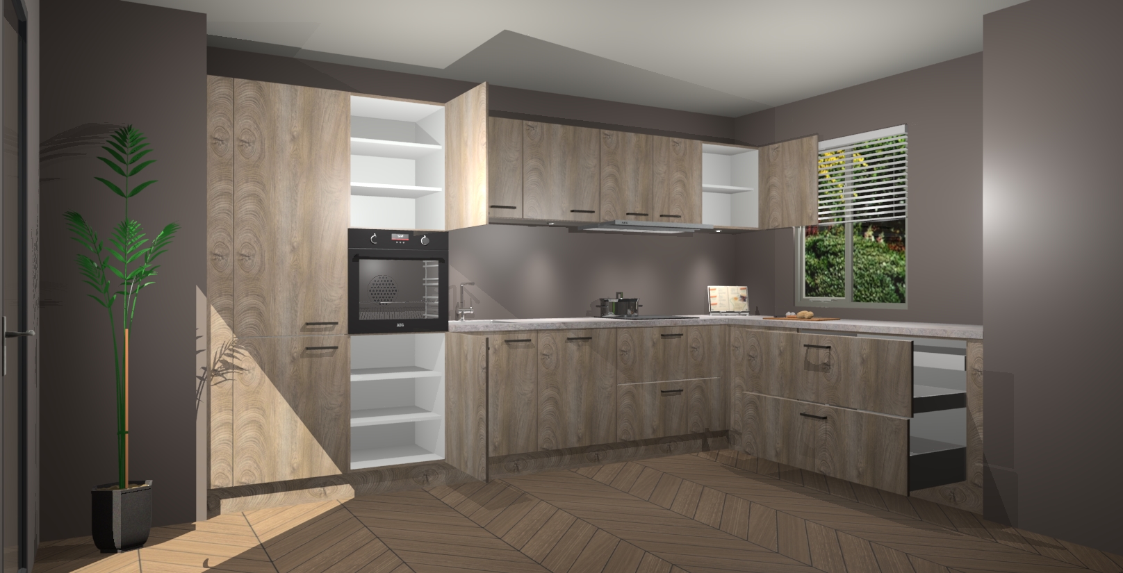 Verwelkom de natuurlijke warmte van de Cantaro Eiken keuken Petten in uw huis. Deze prachtige hoekkeuken met zijn moderne design en warme houten look geeft u meer dan genoeg opbergruimte om uw comfortabel te voelen in uw keuken. Geniet van soft-close deuren die al uw gasten het gevoel zullen geven dat ze zich in een luxueuze ruimte bevinden.