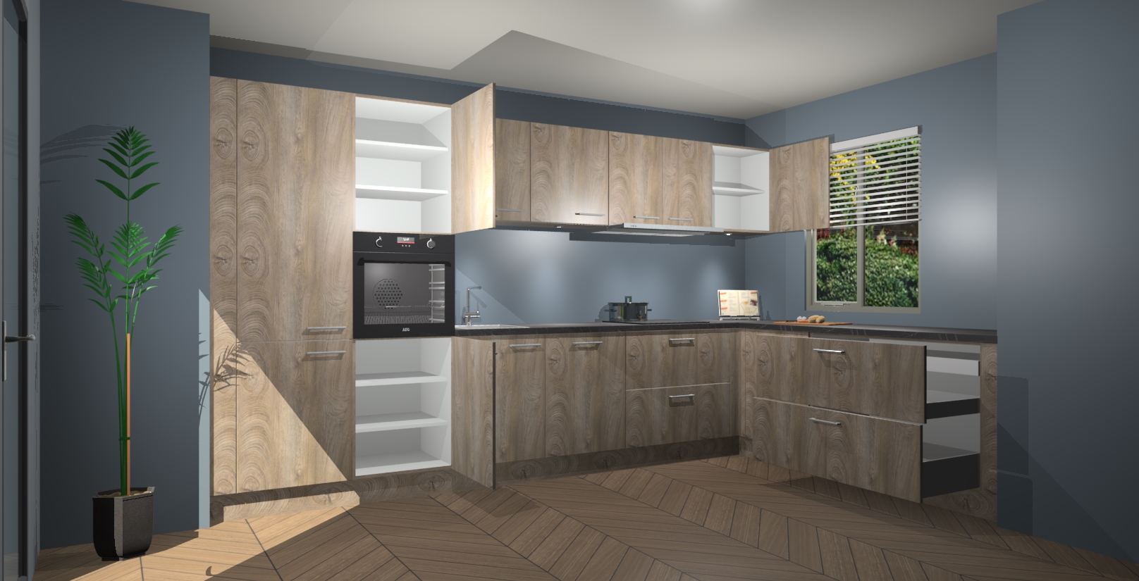 Verwelkom de natuurlijke warmte van de Cantaro Eiken keuken Petten in uw huis. Deze prachtige hoekkeuken met zijn moderne design en warme houten look geeft u meer dan genoeg opbergruimte om uw comfortabel te voelen in uw keuken. Geniet van soft-close deuren die al uw gasten het gevoel zullen geven dat ze zich in een luxueuze ruimte bevinden.