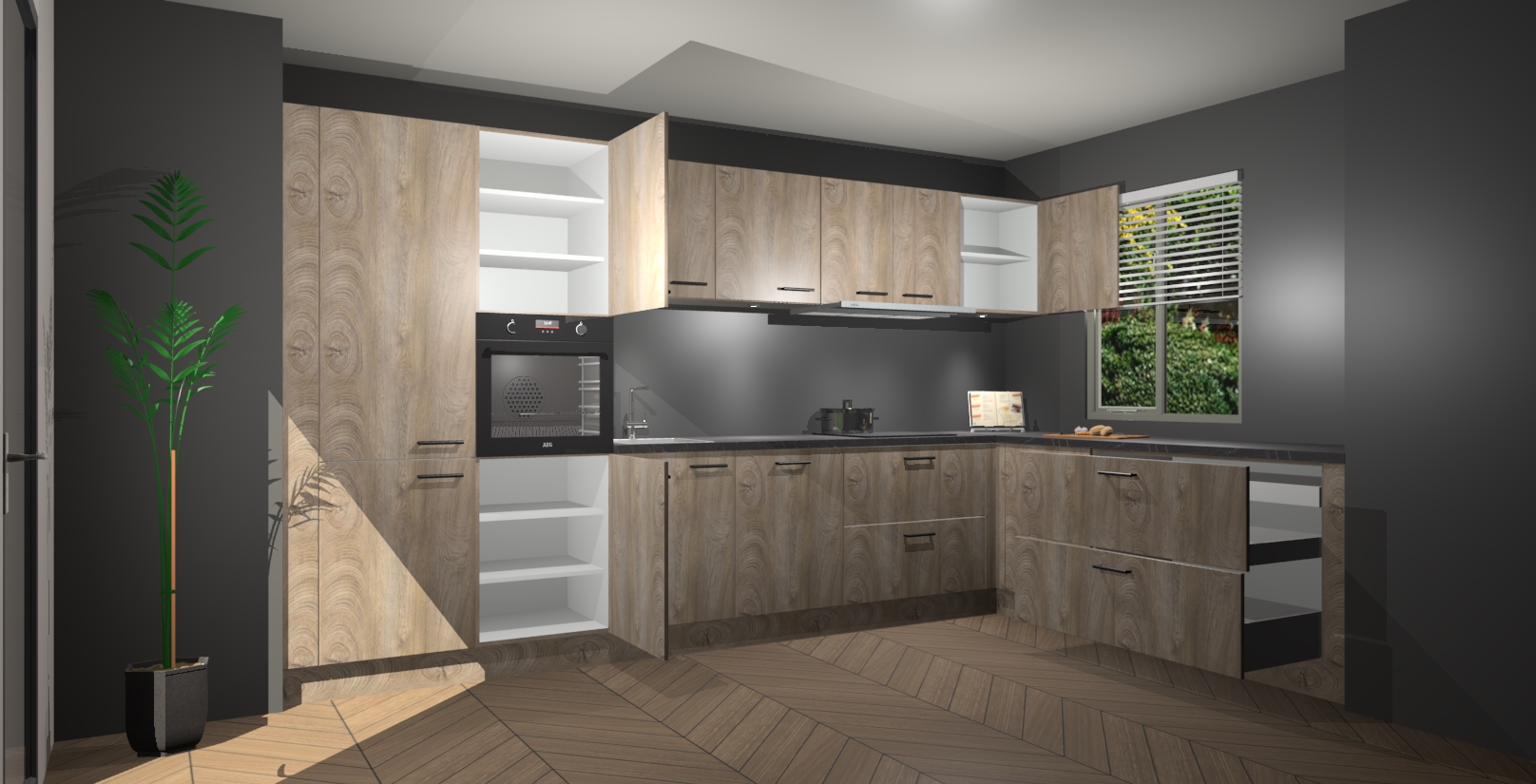Verwelkom de natuurlijke warmte van de Cantaro Eiken keuken Petten in uw huis. Deze prachtige hoekkeuken met zijn moderne design en warme houten look geeft u meer dan genoeg opbergruimte om uw comfortabel te voelen in uw keuken. Geniet van soft-close deuren die al uw gasten het gevoel zullen geven dat ze zich in een luxueuze ruimte bevinden.