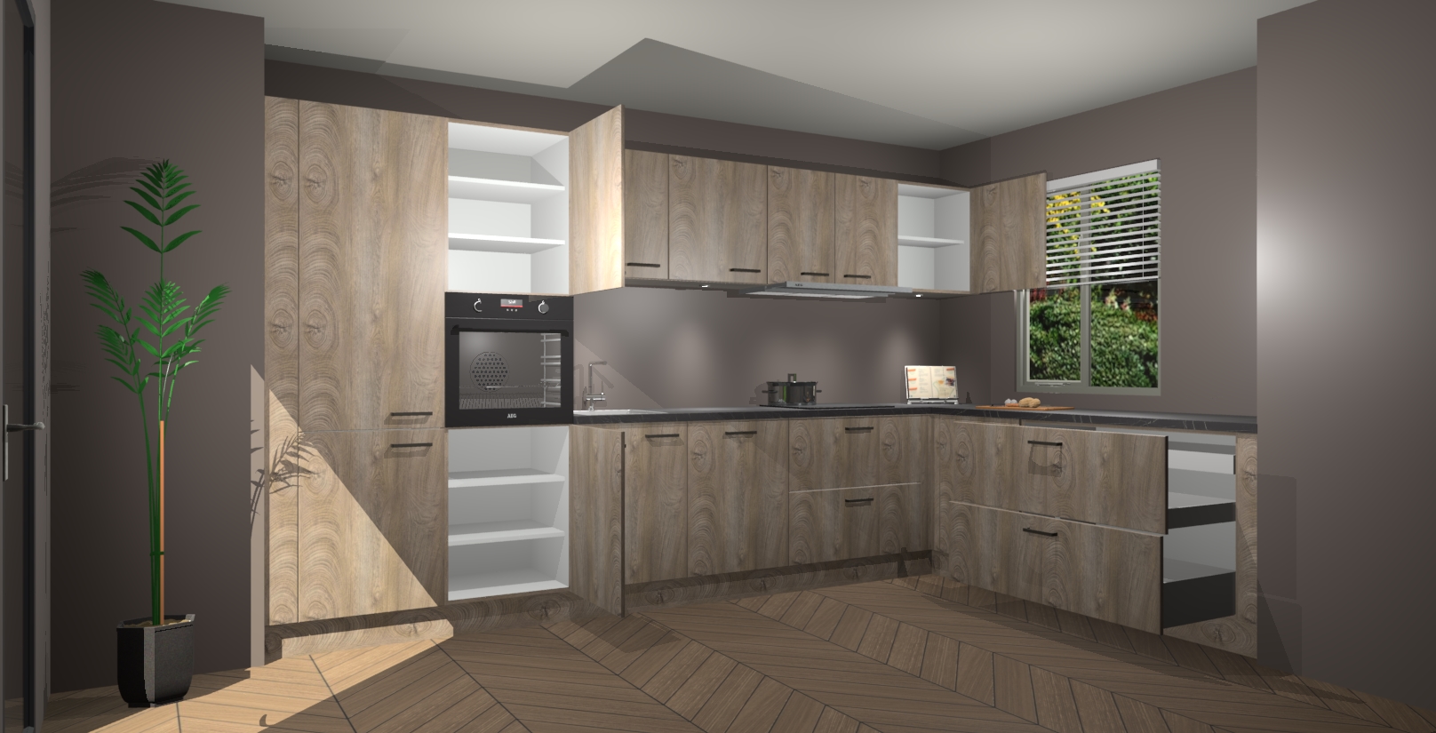 Verwelkom de natuurlijke warmte van de Cantaro Eiken keuken Petten in uw huis. Deze prachtige hoekkeuken met zijn moderne design en warme houten look geeft u meer dan genoeg opbergruimte om uw comfortabel te voelen in uw keuken. Geniet van soft-close deuren die al uw gasten het gevoel zullen geven dat ze zich in een luxueuze ruimte bevinden.
