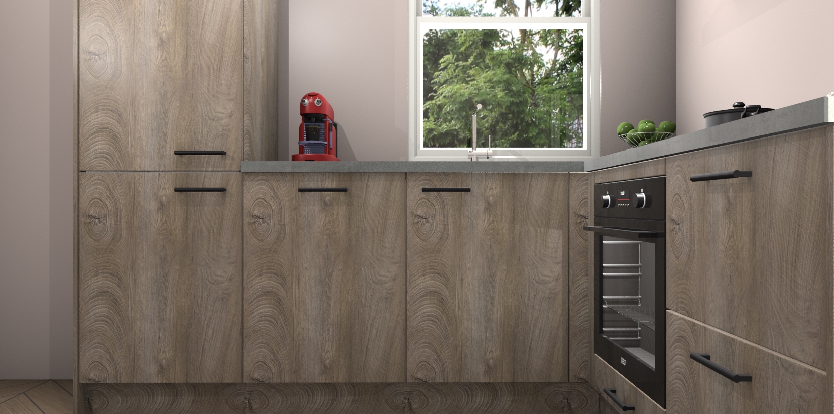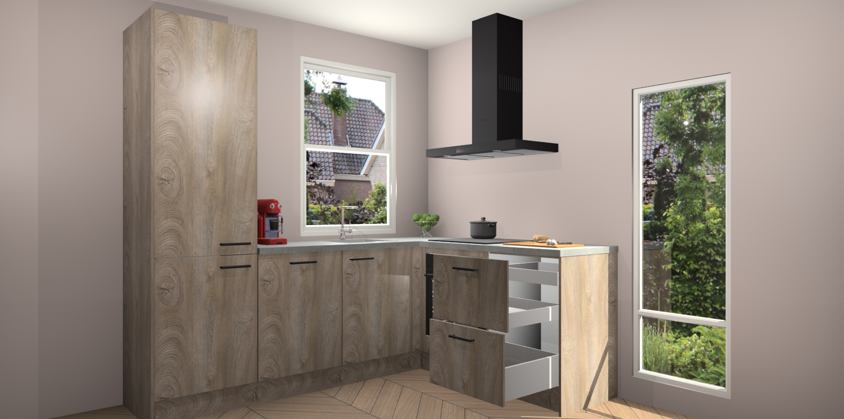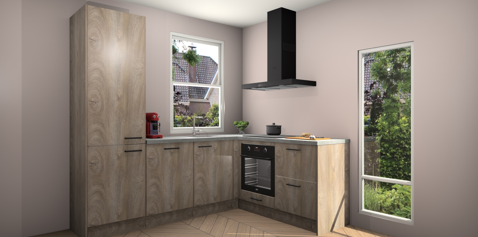 De prachtige Cantaro Eiken keuken Phuket is de perfecte keuze als u op zoek bent naar een moderne hoekkeuken met alle luxe en comfort die u kunt verwachten! De uitstraling in het houtlook-design draagt bij aan de warme sfeer die u nu al voelt wanneer u er naar kijkt. Heeft u genoeg van ouderwetse keukens? Probeer dan direct deze moderne, mooie hoekkeukens en laat iedereen verbluft achter!