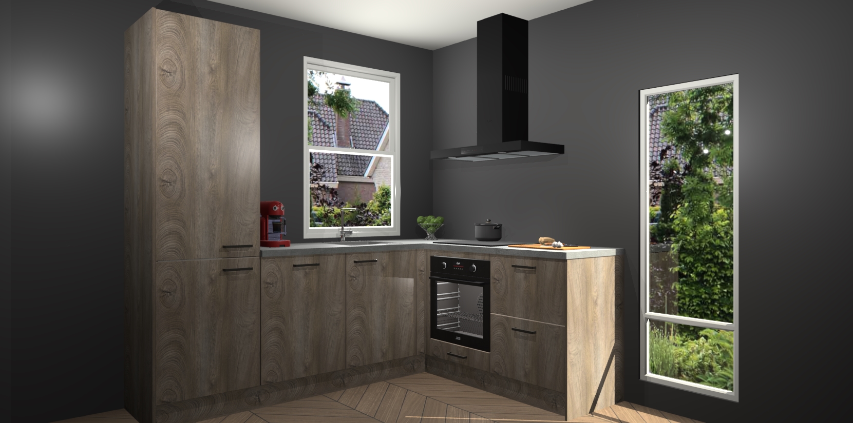 De prachtige Cantaro Eiken keuken Phuket is de perfecte keuze als u op zoek bent naar een moderne hoekkeuken met alle luxe en comfort die u kunt verwachten! De uitstraling in het houtlook-design draagt bij aan de warme sfeer die u nu al voelt wanneer u er naar kijkt. Heeft u genoeg van ouderwetse keukens? Probeer dan direct deze moderne, mooie hoekkeukens en laat iedereen verbluft achter!