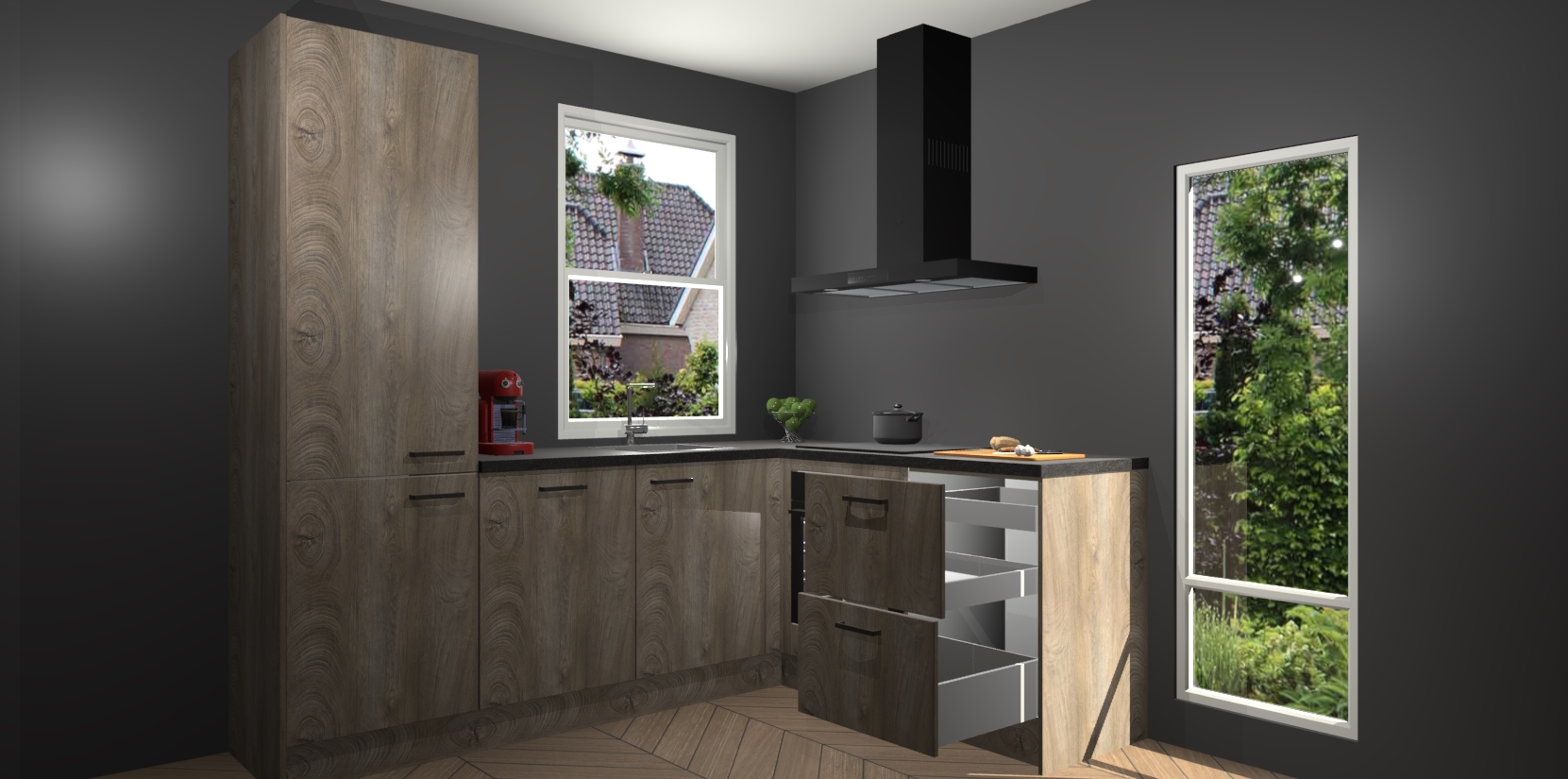 De prachtige Cantaro Eiken keuken Phuket is de perfecte keuze als u op zoek bent naar een moderne hoekkeuken met alle luxe en comfort die u kunt verwachten! De uitstraling in het houtlook-design draagt bij aan de warme sfeer die u nu al voelt wanneer u er naar kijkt. Heeft u genoeg van ouderwetse keukens? Probeer dan direct deze moderne, mooie hoekkeukens en laat iedereen verbluft achter!