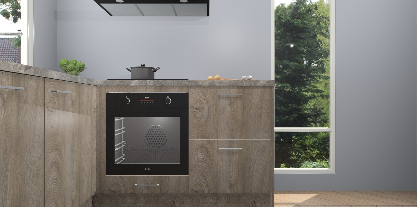 De Cantaro Eiken keuken Phuket heeft alles wat u maar kunt wensen. Niet alleen zijn er softclose deuren, maar ook 5 ingebouwde apparaten: een oven, inductiekookplaat, afzuigkap, vaatwasser en koelkast - waarbij u later gemakkelijk naar het AEG merk, van inductiekookplaat naar kookplaat met geïntegreerde afzuiging of van oven naar combimagnetron kunt upgraden. Dat alles tegen een vast laag tarief! Bovendien geeft de Cantaro Eiken keuken Phuket supersnelle levering van 7 weken. Echt iets voor u als u er niet op wilt wachten om het resultaat te zien in eigen keuken!