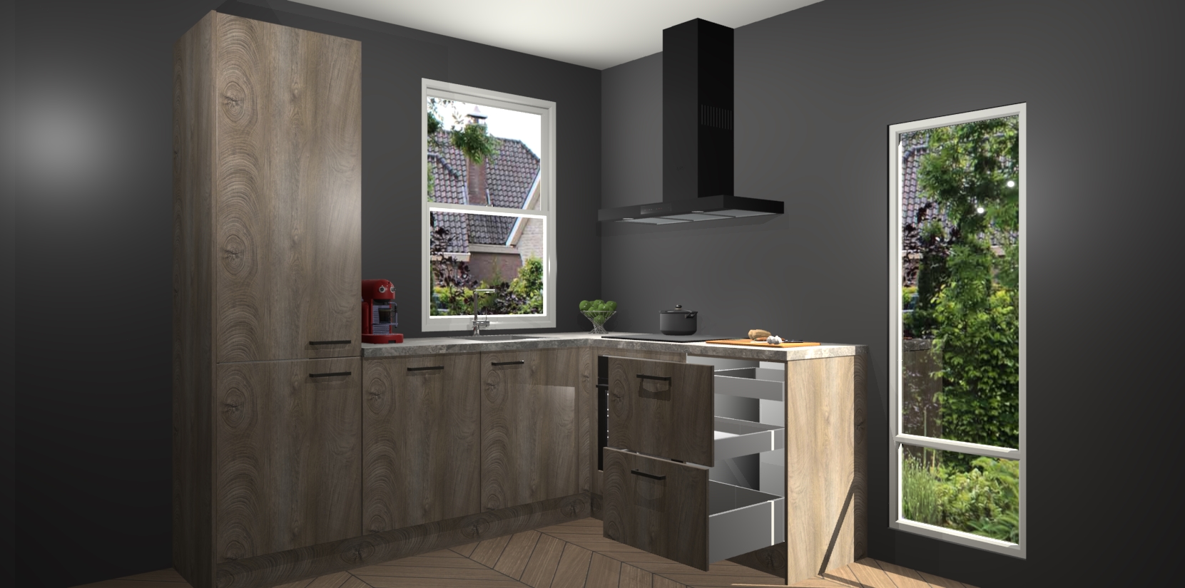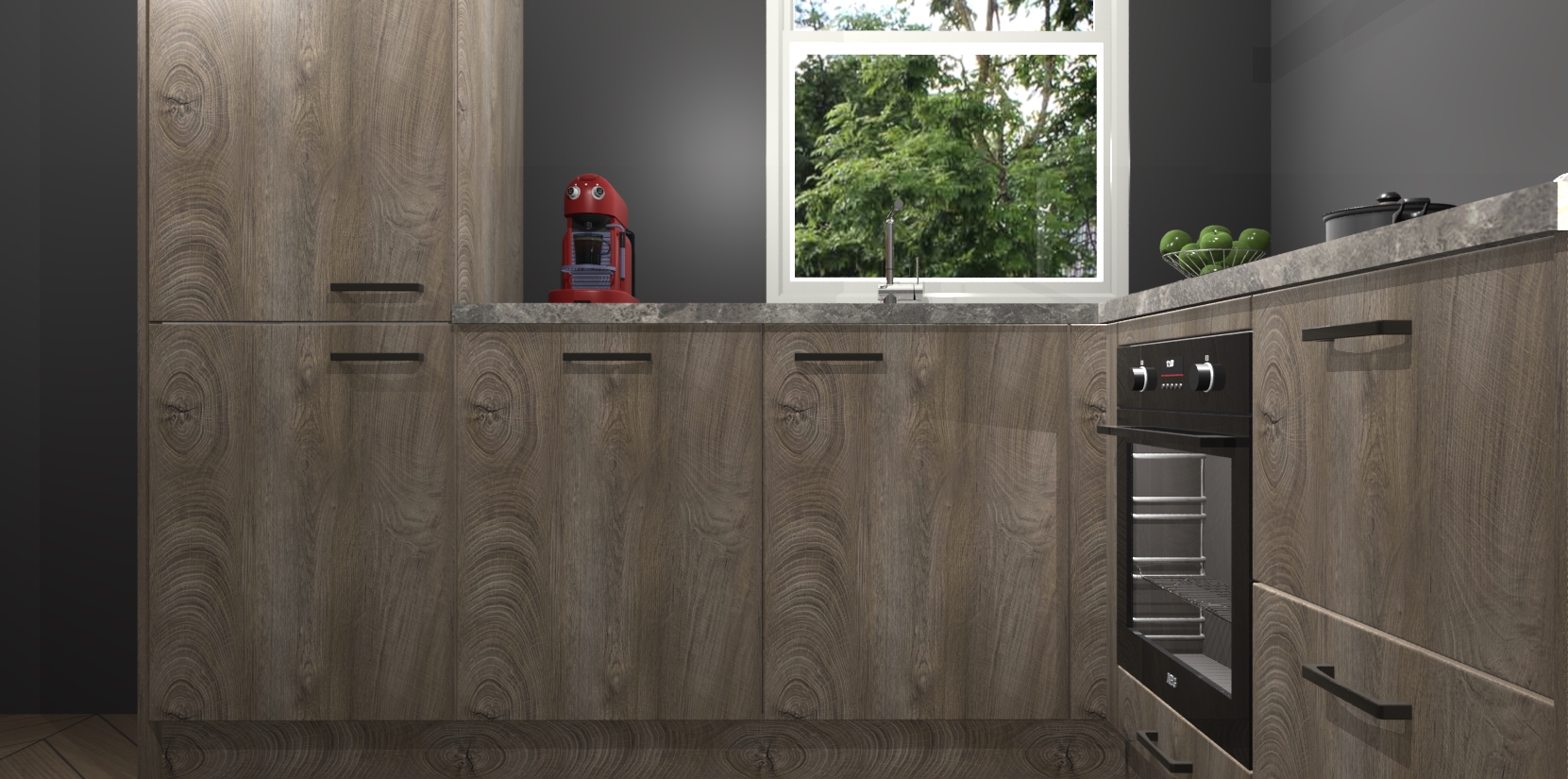 De prachtige Cantaro Eiken keuken Phuket is de perfecte keuze als u op zoek bent naar een moderne hoekkeuken met alle luxe en comfort die u kunt verwachten! De uitstraling in het houtlook-design draagt bij aan de warme sfeer die u nu al voelt wanneer u er naar kijkt. Heeft u genoeg van ouderwetse keukens? Probeer dan direct deze moderne, mooie hoekkeukens en laat iedereen verbluft achter!