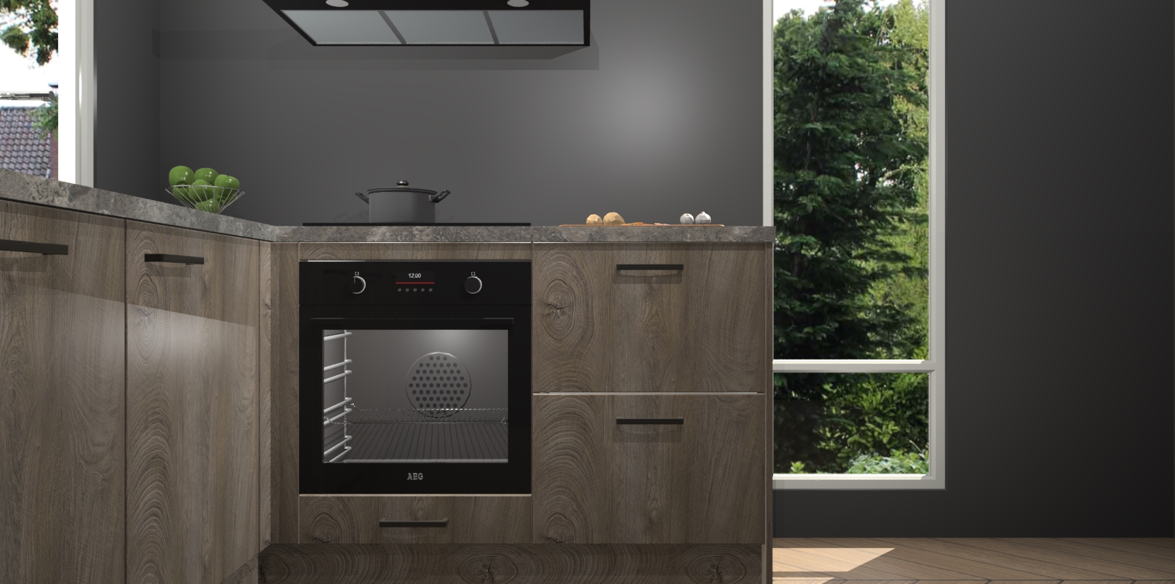 De Cantaro Eiken keuken Phuket heeft alles wat u maar kunt wensen. Niet alleen zijn er softclose deuren, maar ook 5 ingebouwde apparaten: een oven, inductiekookplaat, afzuigkap, vaatwasser en koelkast - waarbij u later gemakkelijk naar het AEG merk, van inductiekookplaat naar kookplaat met geïntegreerde afzuiging of van oven naar combimagnetron kunt upgraden. Dat alles tegen een vast laag tarief! Bovendien geeft de Cantaro Eiken keuken Phuket supersnelle levering van 7 weken. Echt iets voor u als u er niet op wilt wachten om het resultaat te zien in eigen keuken!