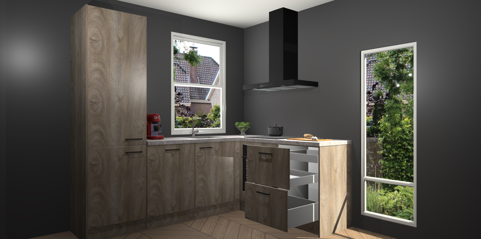 De prachtige Cantaro Eiken keuken Phuket is de perfecte keuze als u op zoek bent naar een moderne hoekkeuken met alle luxe en comfort die u kunt verwachten! De uitstraling in het houtlook-design draagt bij aan de warme sfeer die u nu al voelt wanneer u er naar kijkt. Heeft u genoeg van ouderwetse keukens? Probeer dan direct deze moderne, mooie hoekkeukens en laat iedereen verbluft achter!