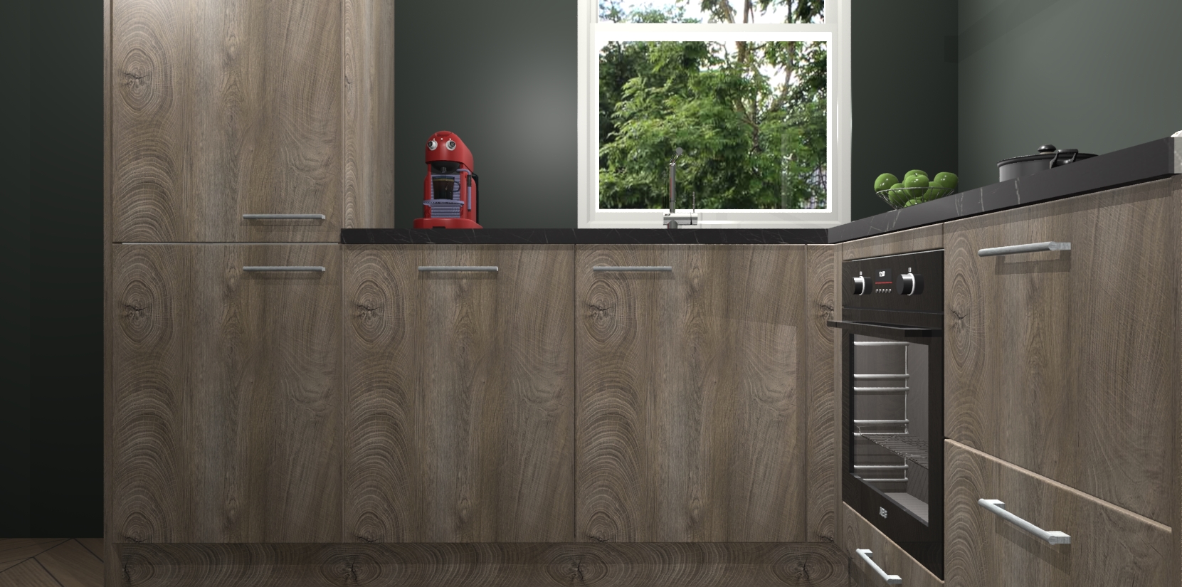 De prachtige Cantaro Eiken keuken Phuket is de perfecte keuze als u op zoek bent naar een moderne hoekkeuken met alle luxe en comfort die u kunt verwachten! De uitstraling in het houtlook-design draagt bij aan de warme sfeer die u nu al voelt wanneer u er naar kijkt. Heeft u genoeg van ouderwetse keukens? Probeer dan direct deze moderne, mooie hoekkeukens en laat iedereen verbluft achter!