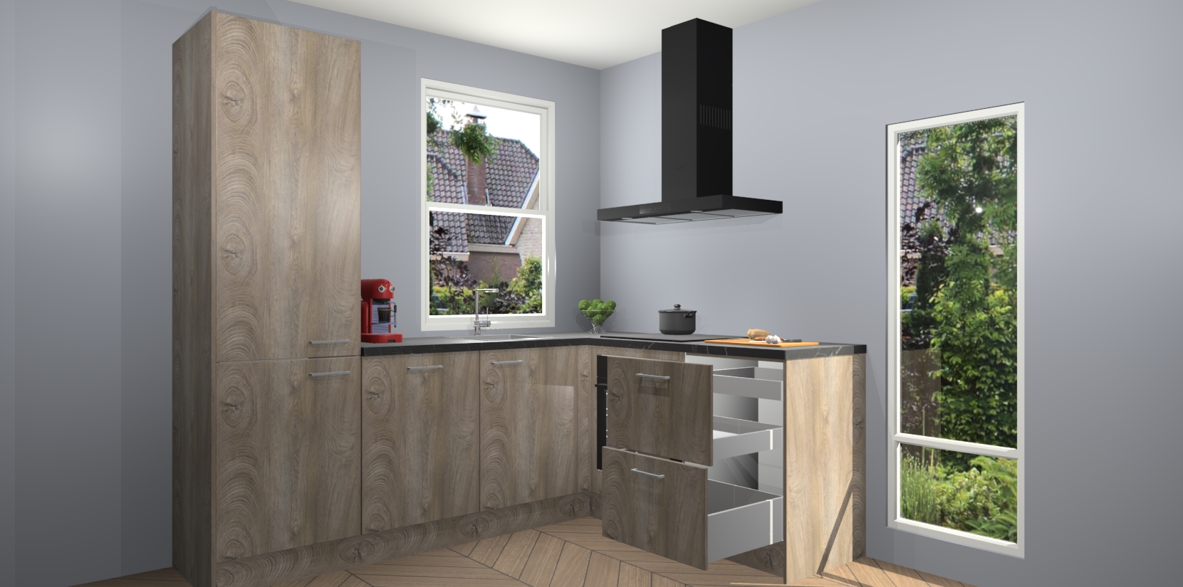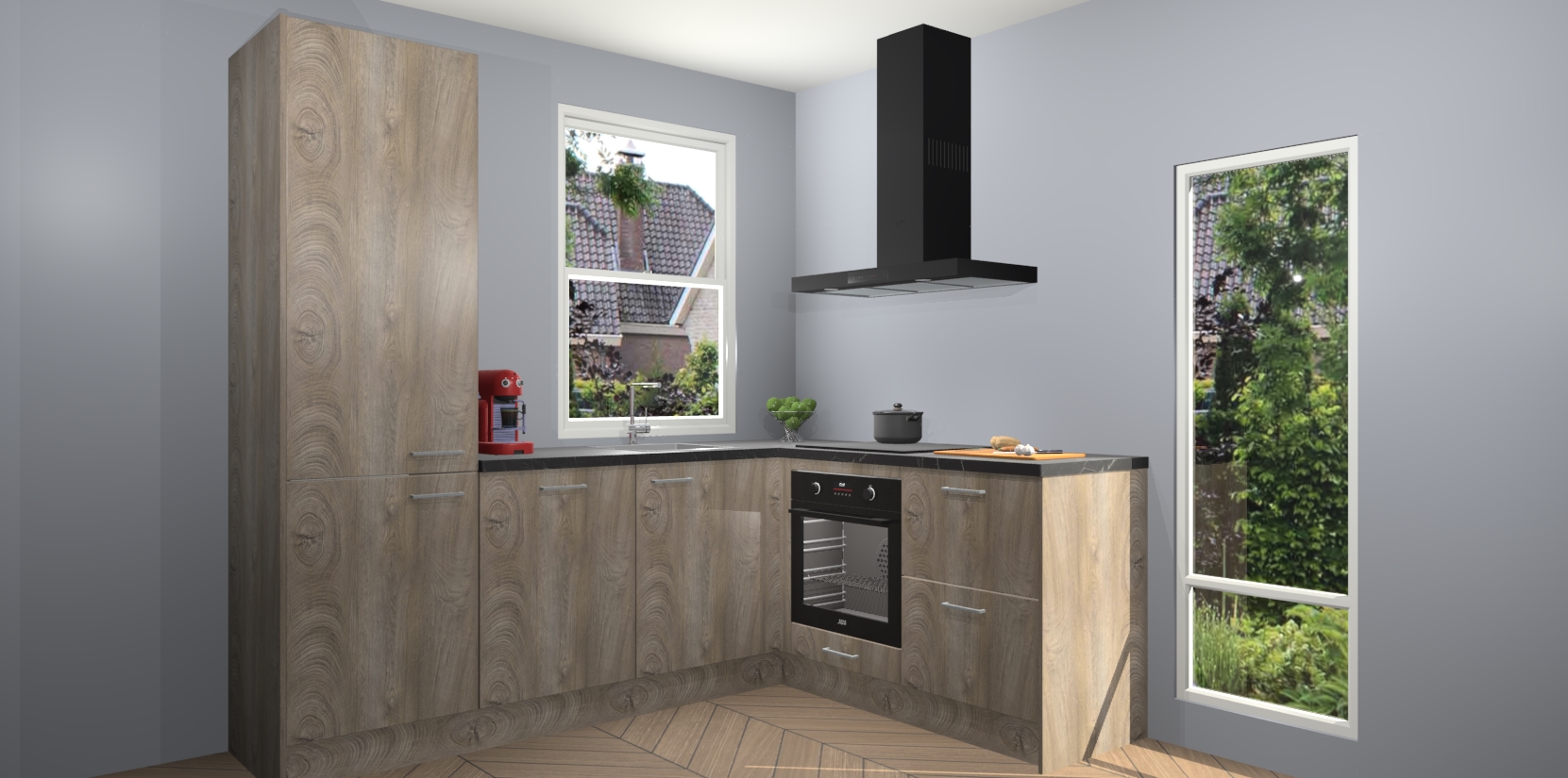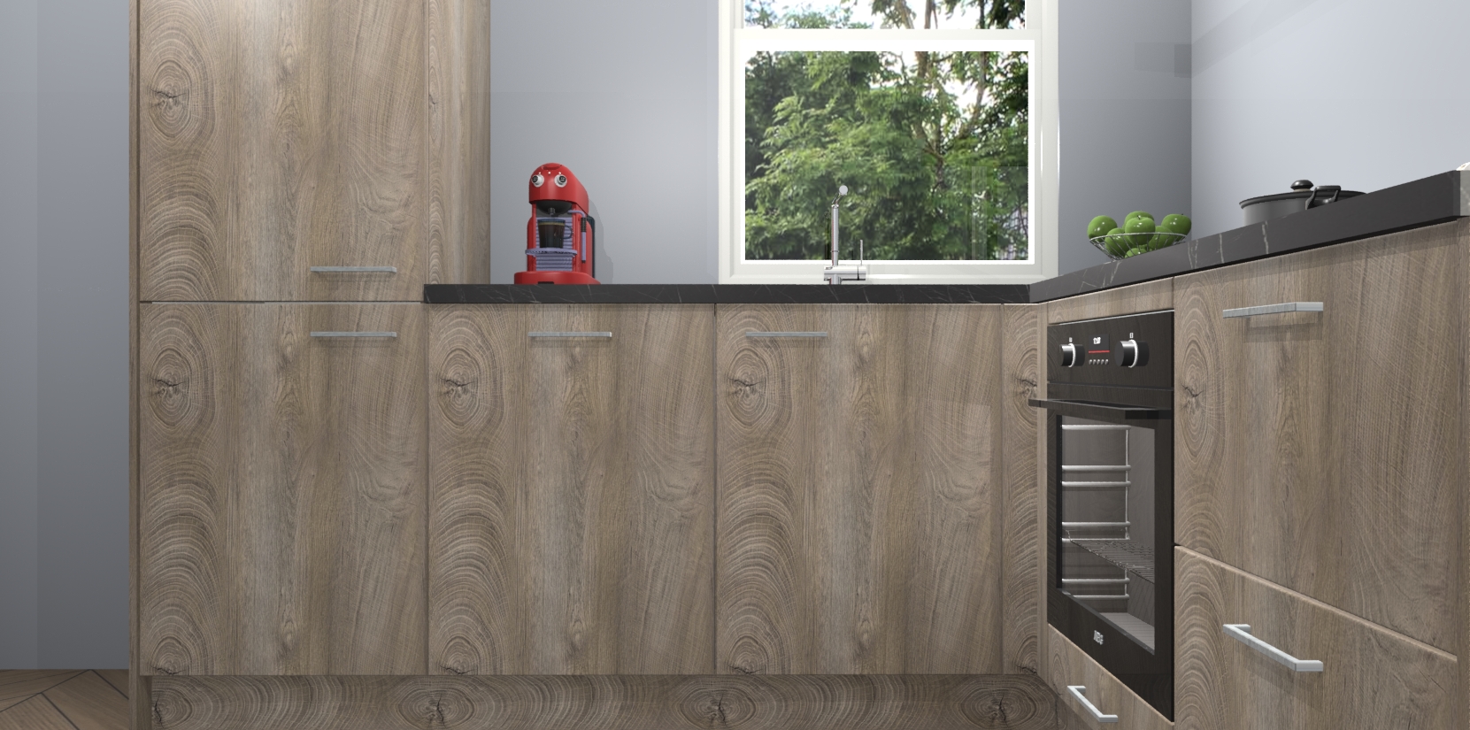 De prachtige Cantaro Eiken keuken Phuket is de perfecte keuze als u op zoek bent naar een moderne hoekkeuken met alle luxe en comfort die u kunt verwachten! De uitstraling in het houtlook-design draagt bij aan de warme sfeer die u nu al voelt wanneer u er naar kijkt. Heeft u genoeg van ouderwetse keukens? Probeer dan direct deze moderne, mooie hoekkeukens en laat iedereen verbluft achter!