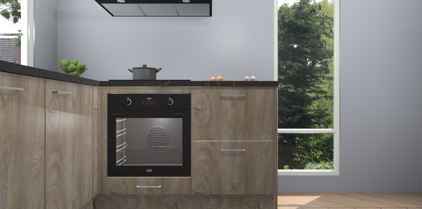 De Cantaro Eiken keuken Phuket heeft alles wat u maar kunt wensen. Niet alleen zijn er softclose deuren, maar ook 5 ingebouwde apparaten: een oven, inductiekookplaat, afzuigkap, vaatwasser en koelkast - waarbij u later gemakkelijk naar het AEG merk, van inductiekookplaat naar kookplaat met geïntegreerde afzuiging of van oven naar combimagnetron kunt upgraden. Dat alles tegen een vast laag tarief! Bovendien geeft de Cantaro Eiken keuken Phuket supersnelle levering van 7 weken. Echt iets voor u als u er niet op wilt wachten om het resultaat te zien in eigen keuken!