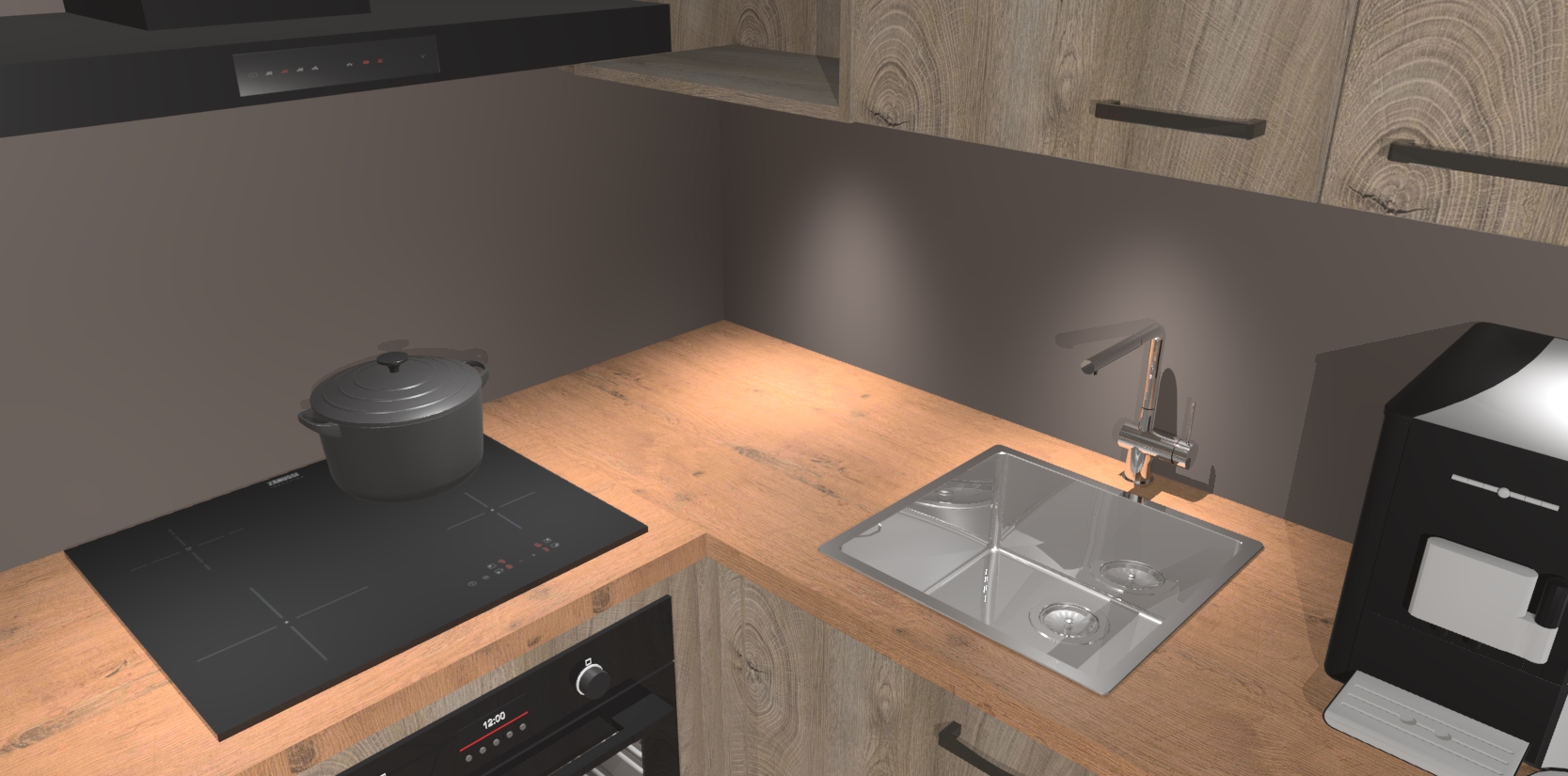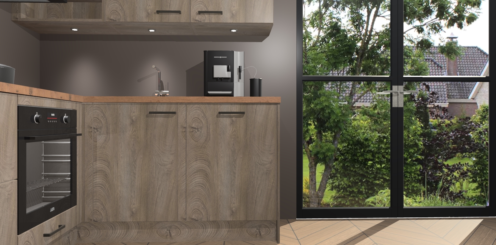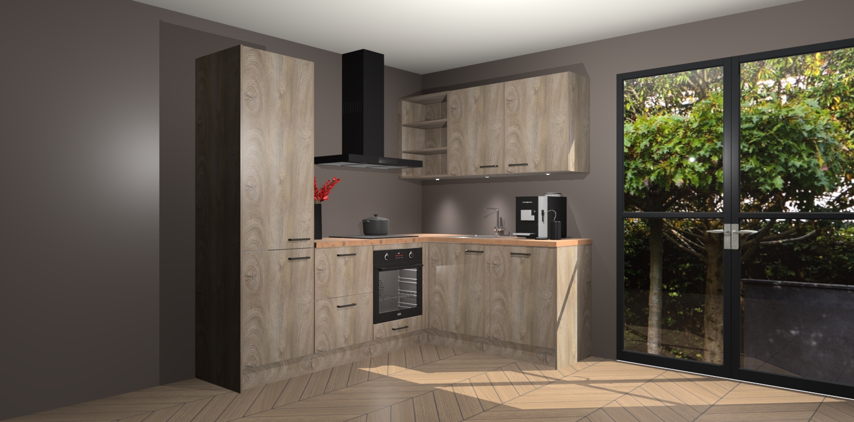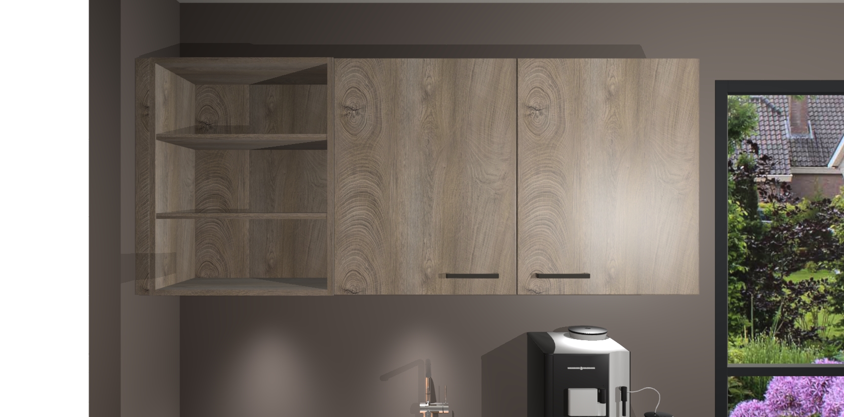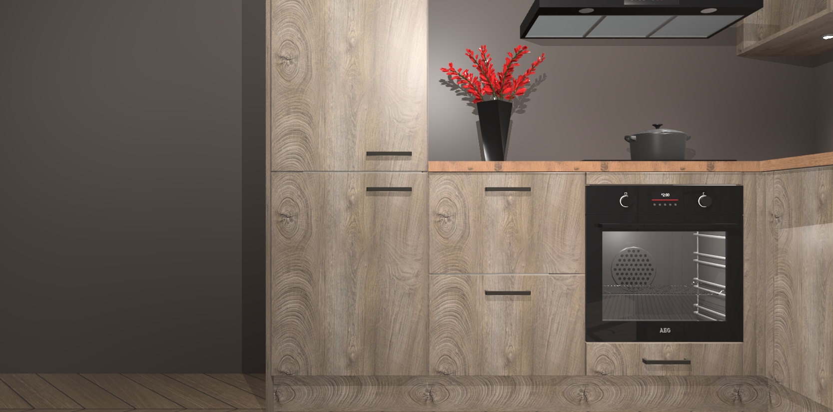 Wauw, dit is de Cantaro Eiken keuken Pilsen! U kunt gerust zeggen dat u elegantie combineert met functionaliteit met deze keuken. Met een modern en chique ontwerp is de keuken precies wat u nodig heeft om uw ruimte te verfraaien. De binnenzijde van de kasten is in dezelfde donkere kleur als de buitenzijde voor een uniforme look, compleet met softclose-kasten die stil sluiten.