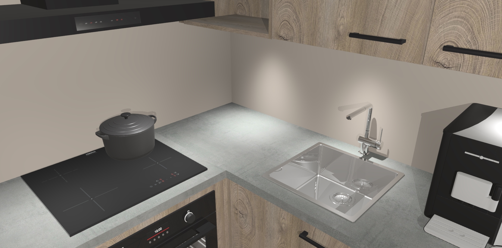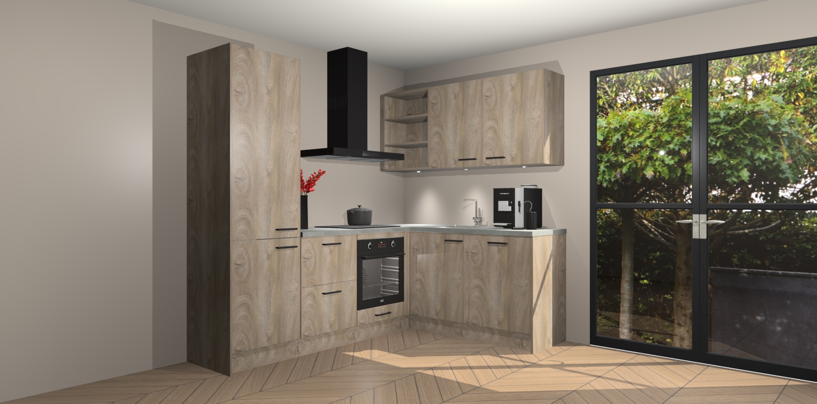 Wauw, dit is de Cantaro Eiken keuken Pilsen! U kunt gerust zeggen dat u elegantie combineert met functionaliteit met deze keuken. Met een modern en chique ontwerp is de keuken precies wat u nodig heeft om uw ruimte te verfraaien. De binnenzijde van de kasten is in dezelfde donkere kleur als de buitenzijde voor een uniforme look, compleet met softclose-kasten die stil sluiten.
