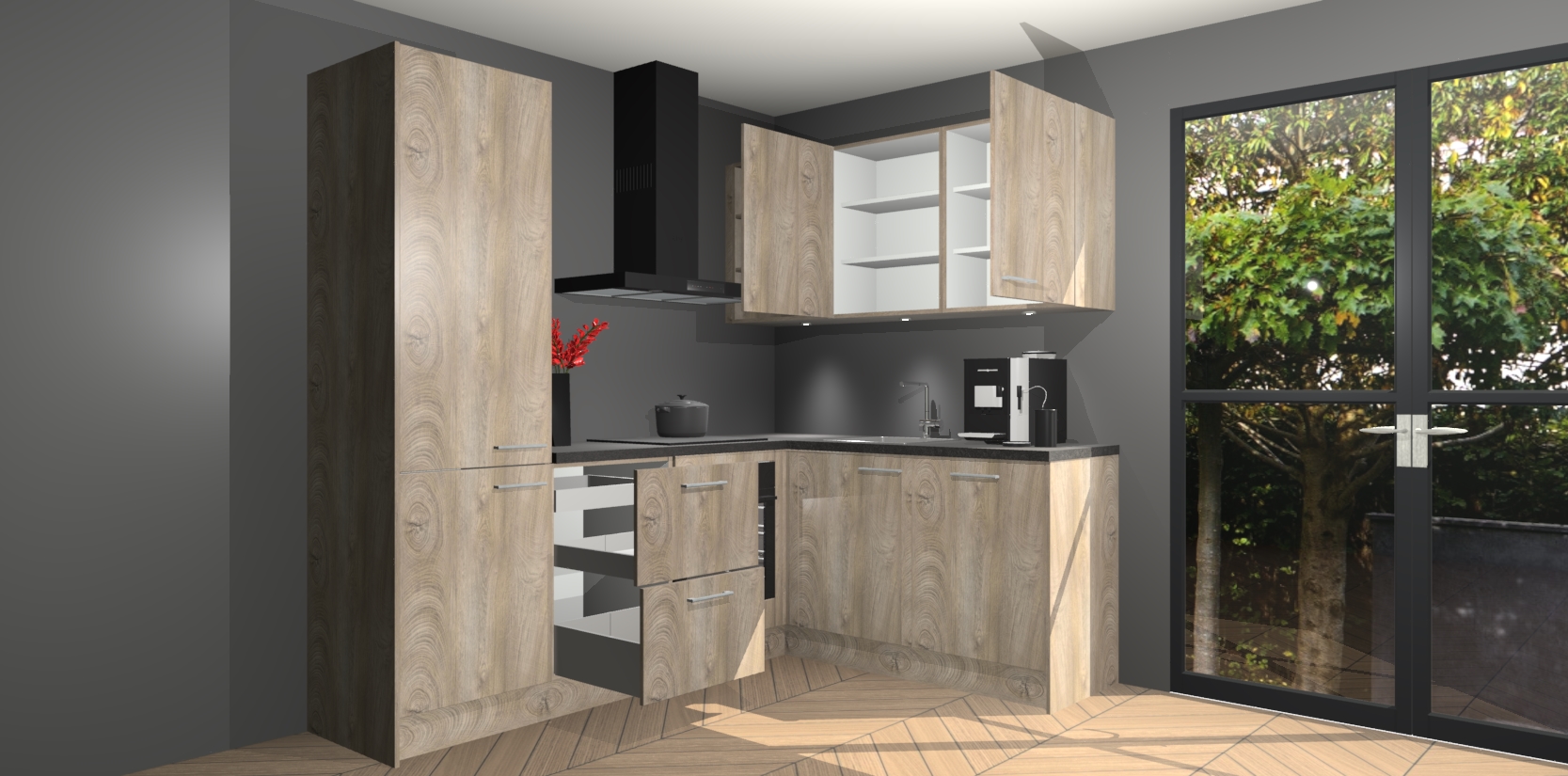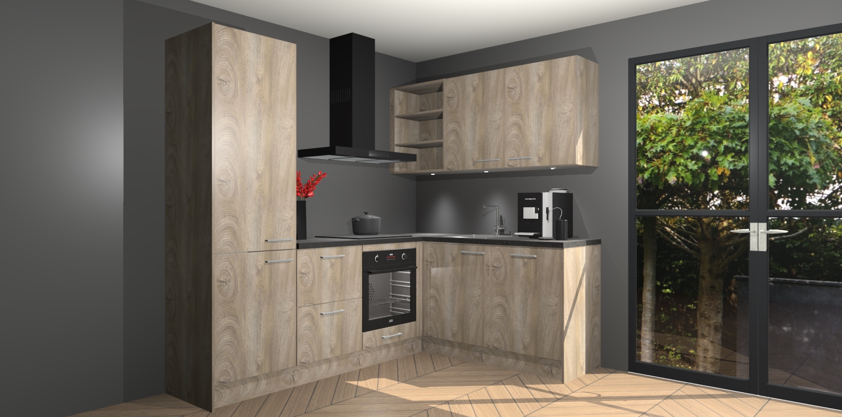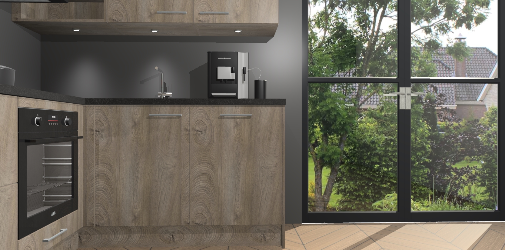 Wauw, dit is de Cantaro Eiken keuken Pilsen! U kunt gerust zeggen dat u elegantie combineert met functionaliteit met deze keuken. Met een modern en chique ontwerp is de keuken precies wat u nodig heeft om uw ruimte te verfraaien. De binnenzijde van de kasten is in dezelfde donkere kleur als de buitenzijde voor een uniforme look, compleet met softclose-kasten die stil sluiten.