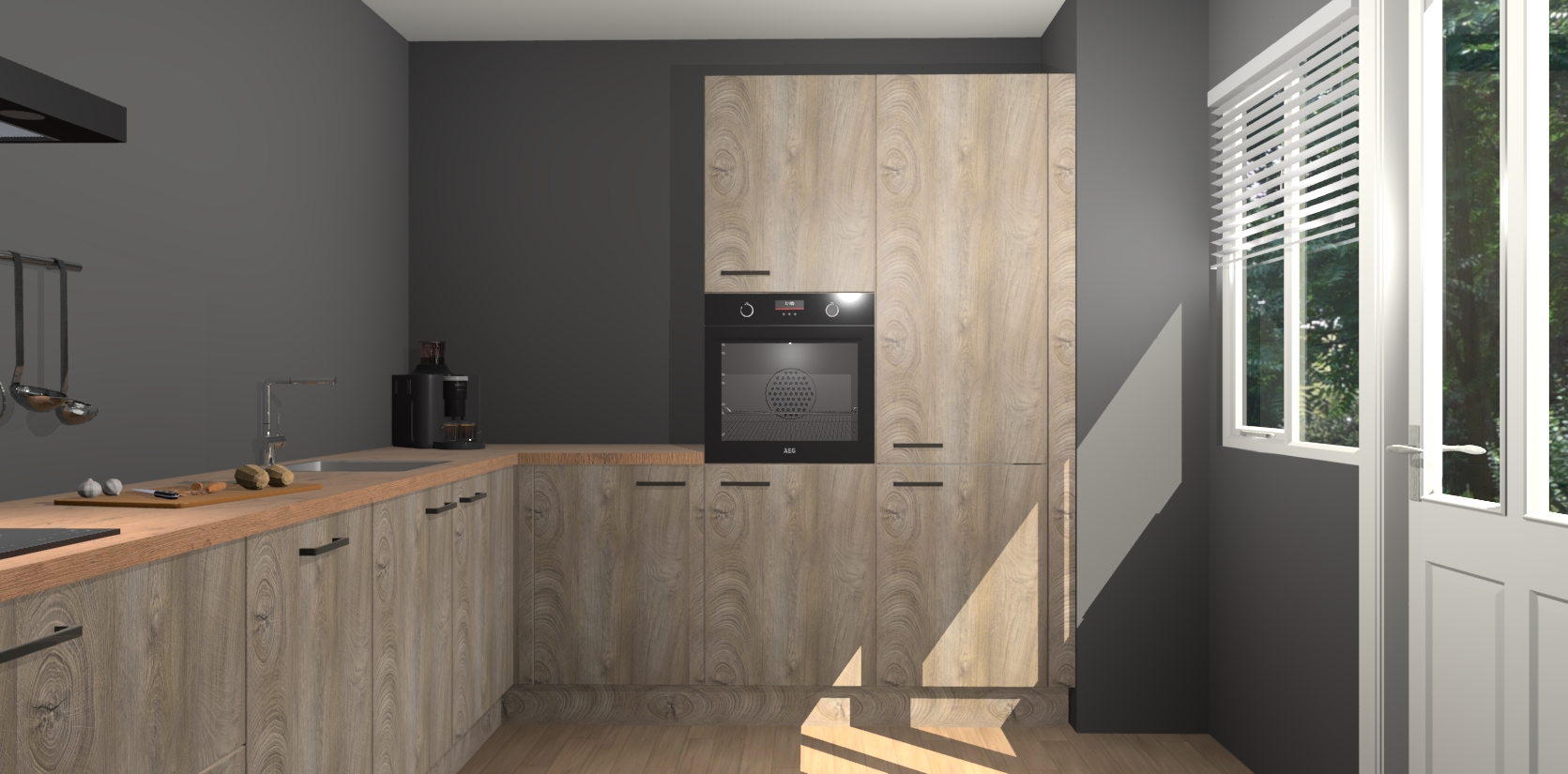 Welkom bij de Cantaro Eiken keuken Portland. Deze prachtige keuken zal de komende jaren het middelpunt van de belangstelling in uw huis zijn. Uitgerust met vijf inbouwapparaten komt u nooit kookgereedschap tekort. Bovendien geeft de warme houtlook elke ruimte een uitnodigende en tijdloze uitstraling.