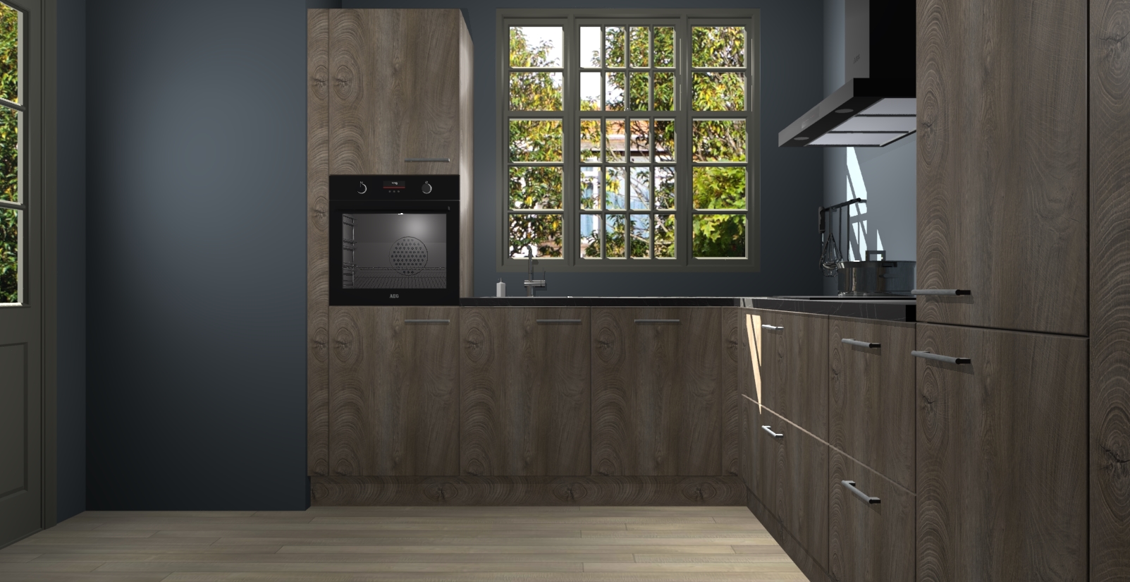 Met een modern, tijdloos design en ruime opslagruimte, zult u zich in no-time thuis voelen in uw nieuwe keuken. Uw leven wordt eenvoudiger met de soft-close deuren die voor het ultieme stille comfort zorgen - geen geluid dat u stoort terwijl u kookt. Ook is de keuken voorzien van 5 ingebouwde apparaten: een oven, inductie kookplaat, afzuigkap, vaatwasser en koelkast. Deze kunnen gemakkelijk na bestelling worden bijgewerkt naar AEG - waardoor uw luxe ervaring compleet is.