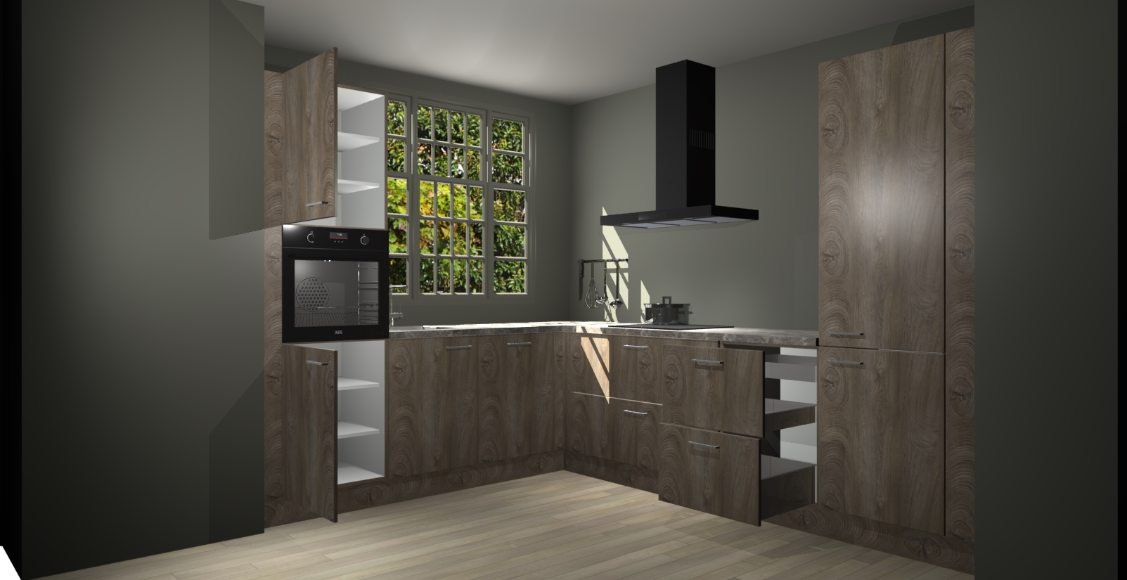 Met een modern, tijdloos design en ruime opslagruimte, zult u zich in no-time thuis voelen in uw nieuwe keuken. Uw leven wordt eenvoudiger met de soft-close deuren die voor het ultieme stille comfort zorgen - geen geluid dat u stoort terwijl u kookt. Ook is de keuken voorzien van 5 ingebouwde apparaten: een oven, inductie kookplaat, afzuigkap, vaatwasser en koelkast. Deze kunnen gemakkelijk na bestelling worden bijgewerkt naar AEG - waardoor uw luxe ervaring compleet is.