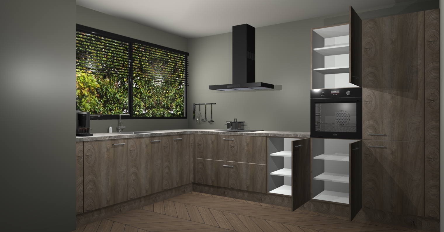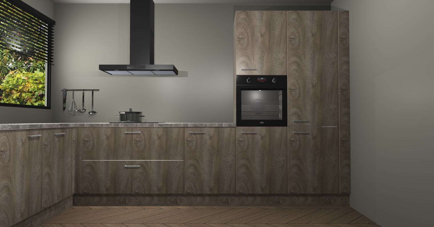 Met een modern, tijdloos design en ruime opslagruimte, zult u zich in no-time thuis voelen in uw nieuwe keuken. Uw leven wordt eenvoudiger met de soft-close deuren die voor het ultieme stille comfort zorgen - geen geluid dat u stoort terwijl u kookt. Ook is de keuken voorzien van 5 ingebouwde apparaten: een oven, inductie kookplaat, afzuigkap, vaatwasser en koelkast. Deze kunnen gemakkelijk na bestelling worden bijgewerkt naar AEG - waardoor uw luxe ervaring compleet is.