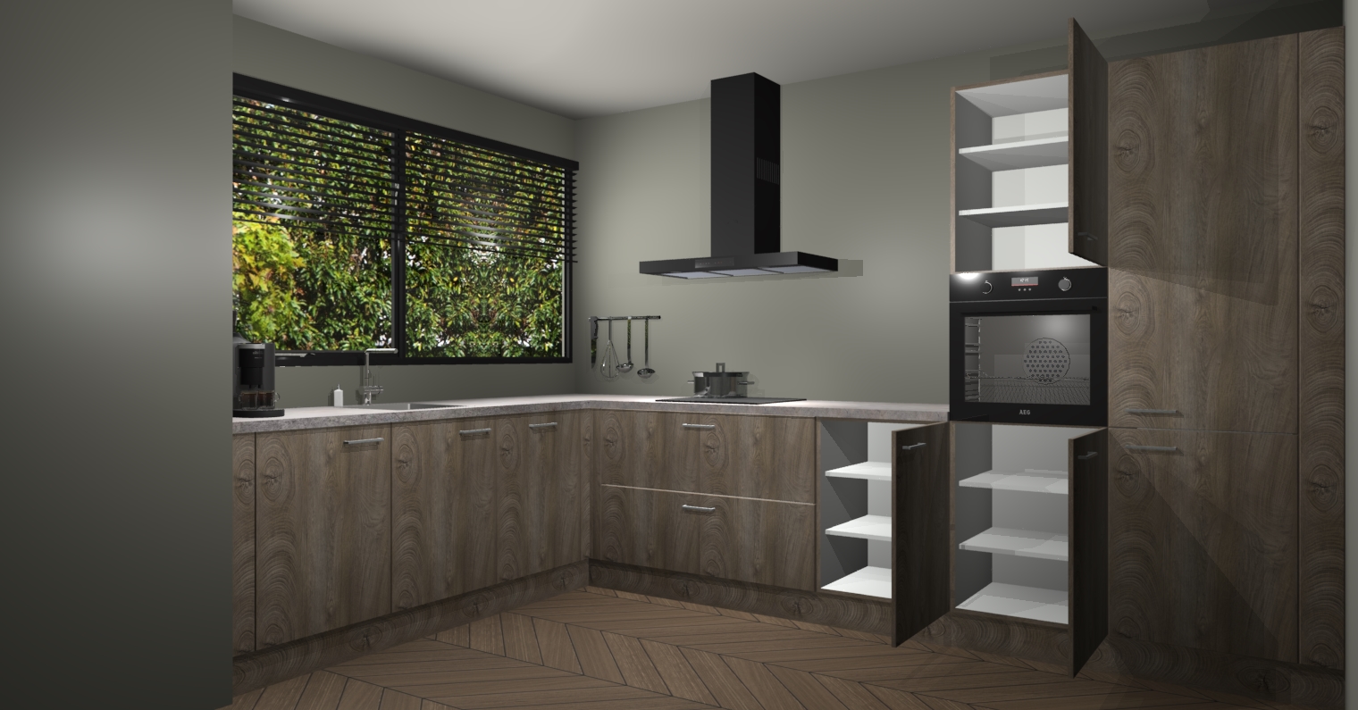 Met een modern, tijdloos design en ruime opslagruimte, zult u zich in no-time thuis voelen in uw nieuwe keuken. Uw leven wordt eenvoudiger met de soft-close deuren die voor het ultieme stille comfort zorgen - geen geluid dat u stoort terwijl u kookt. Ook is de keuken voorzien van 5 ingebouwde apparaten: een oven, inductie kookplaat, afzuigkap, vaatwasser en koelkast. Deze kunnen gemakkelijk na bestelling worden bijgewerkt naar AEG - waardoor uw luxe ervaring compleet is.