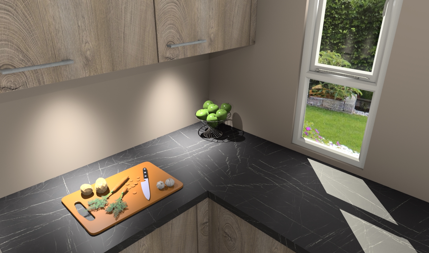 - Bij een hoekwerkblad zijn de hoeken in gevreesd en op maat gemaakt