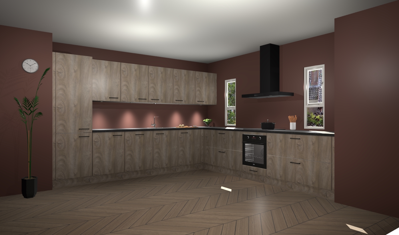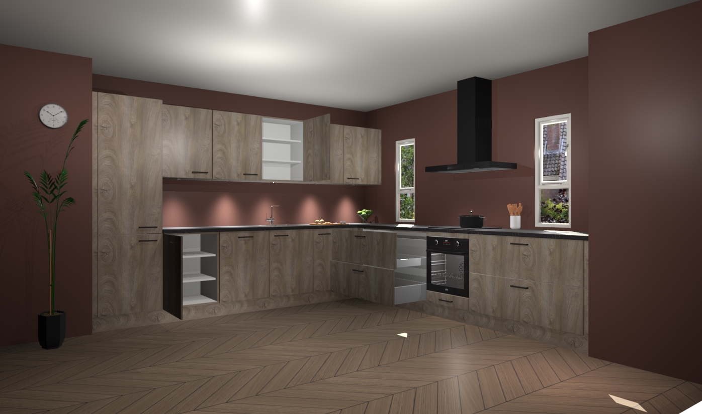 De cantaro eiken keuken is een ideale hoekkeuken en heeft alle functies en apparatuur die u maar nodig kunt hebben. Bij de bestelling krijgt u een oven, inductiekookplaat, afzuigkap, vaatwasser en koelkast - deze kunnen desgewenst eenvoudig worden uitgebreid naar AEG na bestellen. Elke kast wordt ook voor gemonteerd geleverd met soft close deuren die jarenlang gebruik beloven. Stelt u zich voor dat u geen gedoe heeft met vervelende montage - vanaf het moment dat u uw bestelling plaats, duurt het slechts 7 weken voor het bij u thuis geleverd wordt.