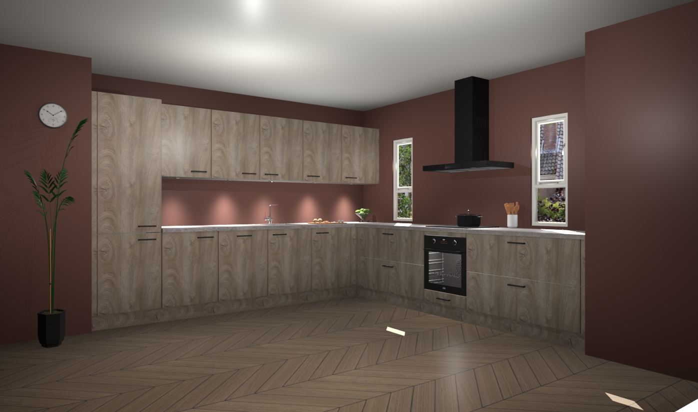 De cantaro eiken keuken is een ideale hoekkeuken en heeft alle functies en apparatuur die u maar nodig kunt hebben. Bij de bestelling krijgt u een oven, inductiekookplaat, afzuigkap, vaatwasser en koelkast - deze kunnen desgewenst eenvoudig worden uitgebreid naar AEG na bestellen. Elke kast wordt ook voor gemonteerd geleverd met soft close deuren die jarenlang gebruik beloven. Stelt u zich voor dat u geen gedoe heeft met vervelende montage - vanaf het moment dat u uw bestelling plaats, duurt het slechts 7 weken voor het bij u thuis geleverd wordt.