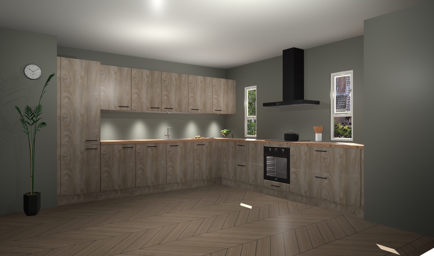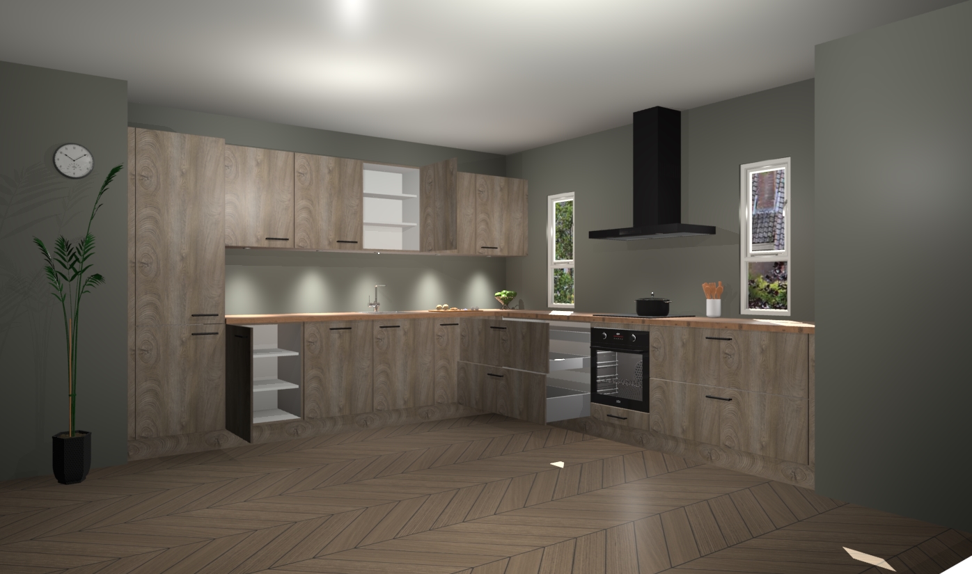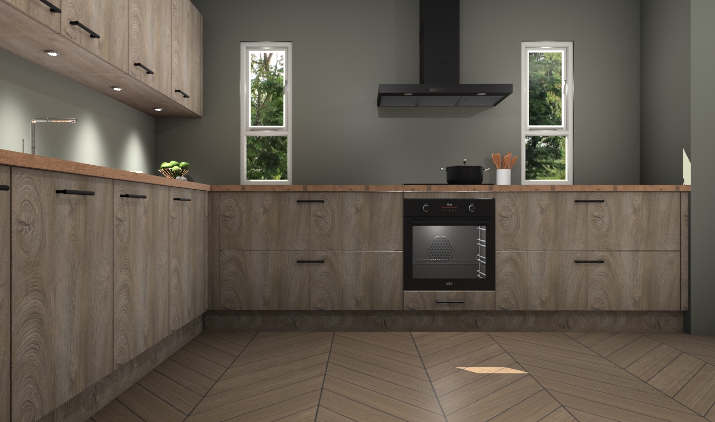De cantaro eiken keuken is een ideale hoekkeuken en heeft alle functies en apparatuur die u maar nodig kunt hebben. Bij de bestelling krijgt u een oven, inductiekookplaat, afzuigkap, vaatwasser en koelkast - deze kunnen desgewenst eenvoudig worden uitgebreid naar AEG na bestellen. Elke kast wordt ook voor gemonteerd geleverd met soft close deuren die jarenlang gebruik beloven. Stelt u zich voor dat u geen gedoe heeft met vervelende montage - vanaf het moment dat u uw bestelling plaats, duurt het slechts 7 weken voor het bij u thuis geleverd wordt.