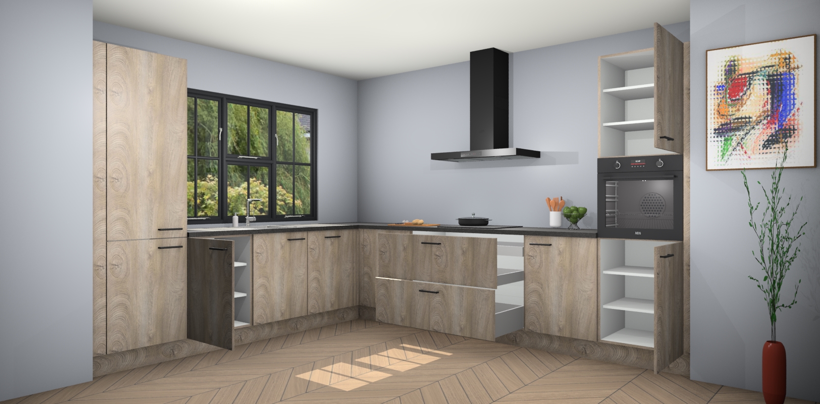 In deze box zijn alle kleuren verzameld van de deuren en werkbladen. Vraag de gratis kleurenbox aan en kijk thuis rustig verder!