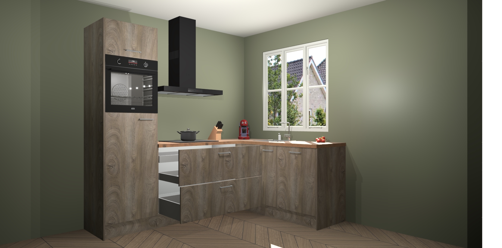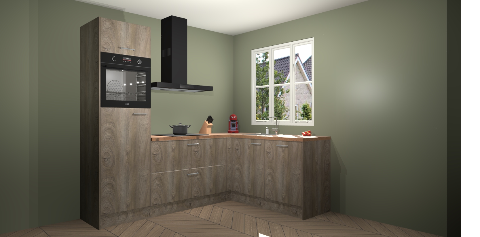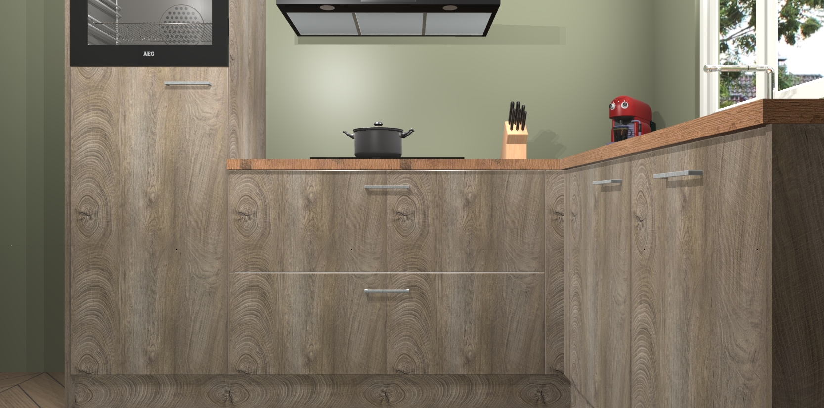 Dit model biedt u voldoende opbergruimte en vijf ingebouwde apparaten: een oven, inductiekookplaat, afzuigkap, vaatwasser en koelkast. Deze apparaten kunnen gemakkelijk worden geüpgrade naar AEG nadat u besteld heeft. De verschillende laden en kastjes bevatten softclose-deuren waardoor ze gezellig dichtvallen met een geruststellend helemaal geruisloos geluid. En dat is nog niet alles! We garanderen ook dat de prijs altijd laag blijft - dus haal nu uw Cantaro Eiken keuken Victoria terwijl het kan.