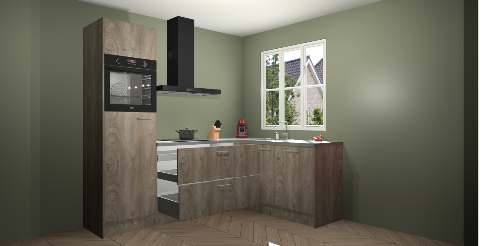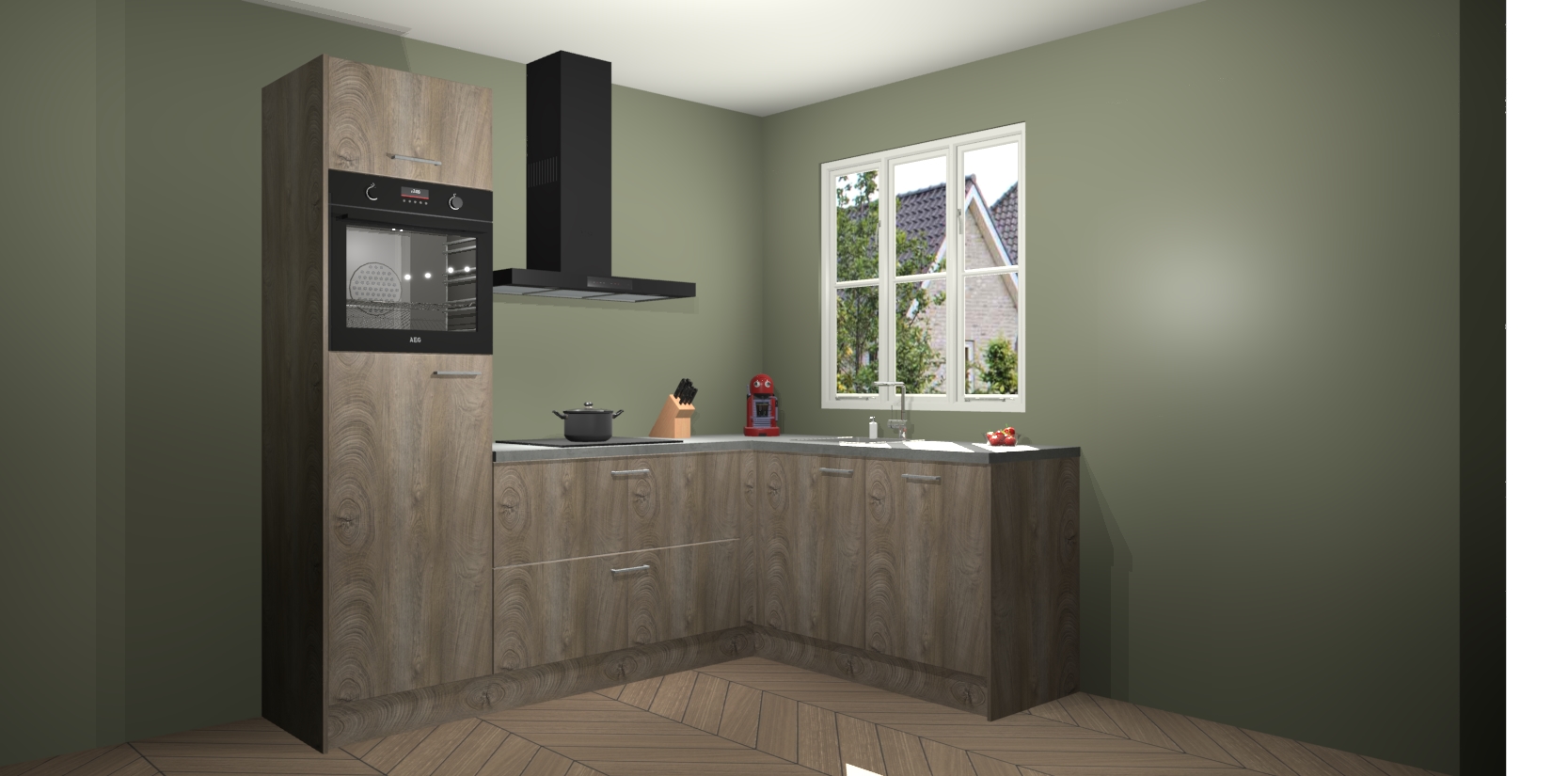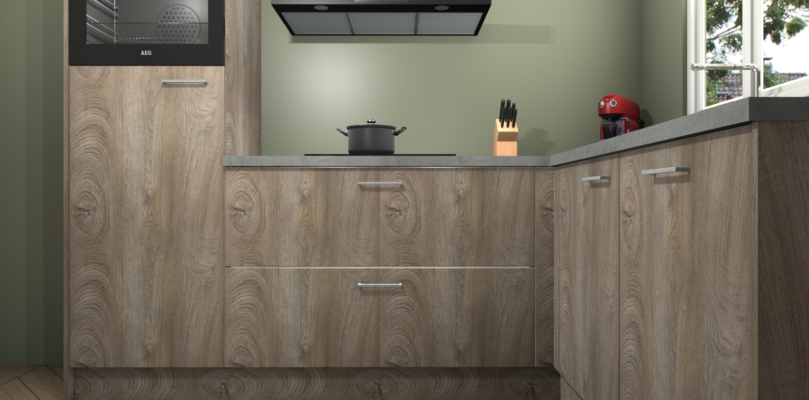 Dit model biedt u voldoende opbergruimte en vijf ingebouwde apparaten: een oven, inductiekookplaat, afzuigkap, vaatwasser en koelkast. Deze apparaten kunnen gemakkelijk worden geüpgrade naar AEG nadat u besteld heeft. De verschillende laden en kastjes bevatten softclose-deuren waardoor ze gezellig dichtvallen met een geruststellend helemaal geruisloos geluid. En dat is nog niet alles! We garanderen ook dat de prijs altijd laag blijft - dus haal nu uw Cantaro Eiken keuken Victoria terwijl het kan.