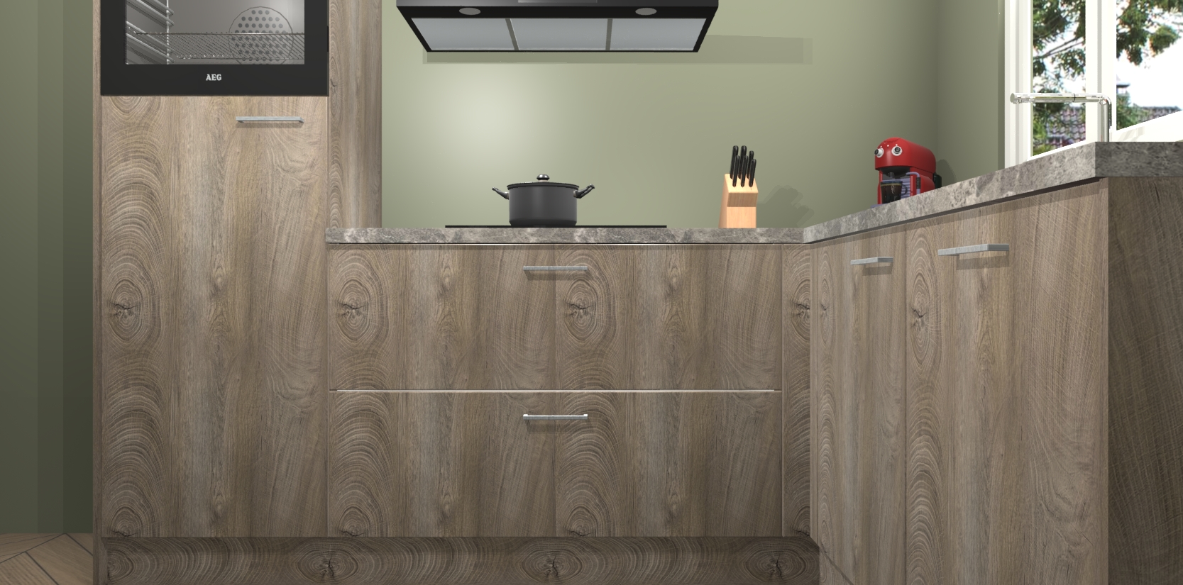 Dit model biedt u voldoende opbergruimte en vijf ingebouwde apparaten: een oven, inductiekookplaat, afzuigkap, vaatwasser en koelkast. Deze apparaten kunnen gemakkelijk worden geüpgrade naar AEG nadat u besteld heeft. De verschillende laden en kastjes bevatten softclose-deuren waardoor ze gezellig dichtvallen met een geruststellend helemaal geruisloos geluid. En dat is nog niet alles! We garanderen ook dat de prijs altijd laag blijft - dus haal nu uw Cantaro Eiken keuken Victoria terwijl het kan.