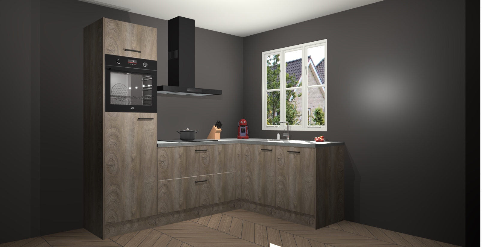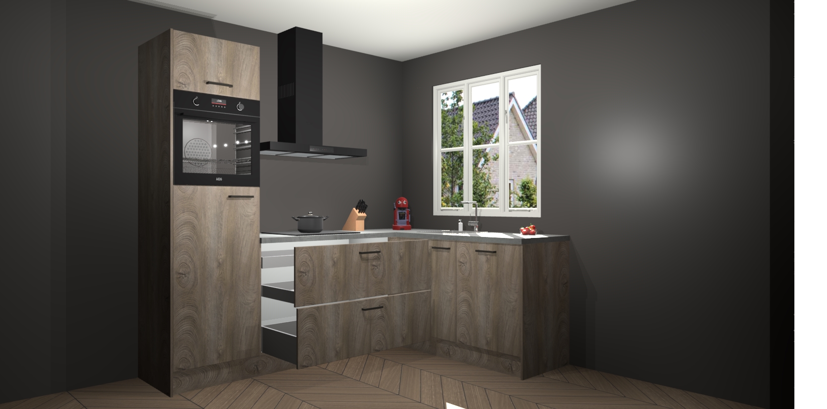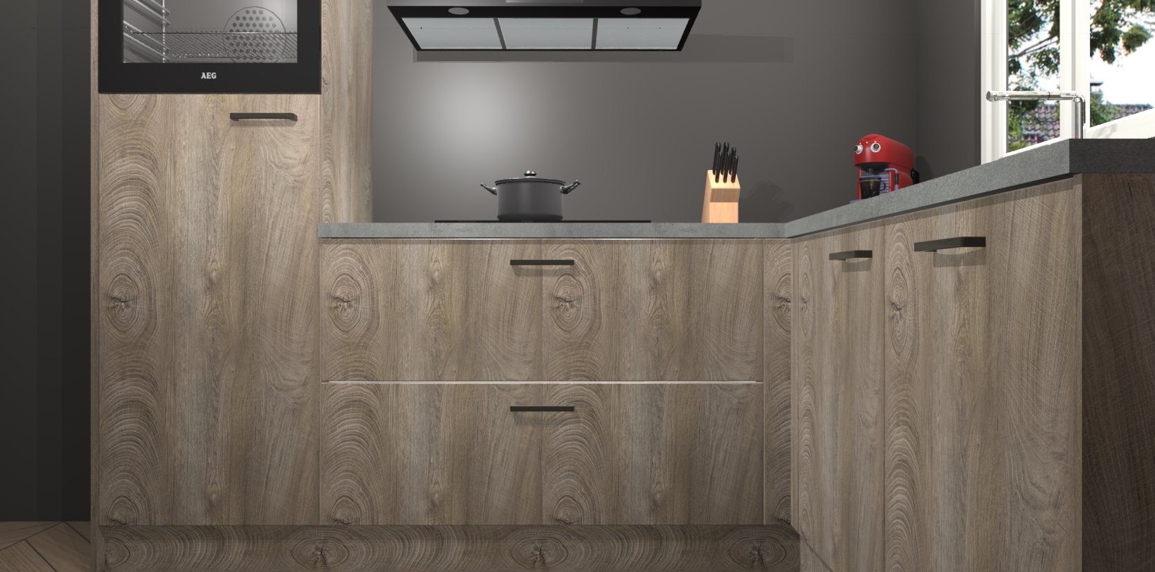 Dit model biedt u voldoende opbergruimte en vijf ingebouwde apparaten: een oven, inductiekookplaat, afzuigkap, vaatwasser en koelkast. Deze apparaten kunnen gemakkelijk worden geüpgrade naar AEG nadat u besteld heeft. De verschillende laden en kastjes bevatten softclose-deuren waardoor ze gezellig dichtvallen met een geruststellend helemaal geruisloos geluid. En dat is nog niet alles! We garanderen ook dat de prijs altijd laag blijft - dus haal nu uw Cantaro Eiken keuken Victoria terwijl het kan.