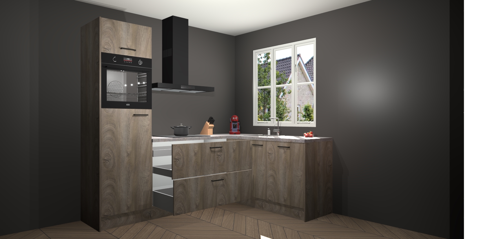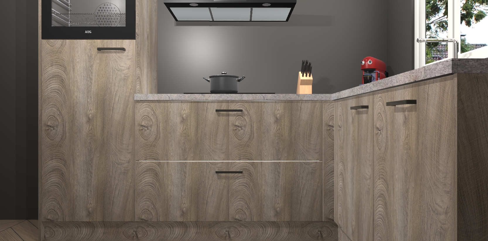 Dit model biedt u voldoende opbergruimte en vijf ingebouwde apparaten: een oven, inductiekookplaat, afzuigkap, vaatwasser en koelkast. Deze apparaten kunnen gemakkelijk worden geüpgrade naar AEG nadat u besteld heeft. De verschillende laden en kastjes bevatten softclose-deuren waardoor ze gezellig dichtvallen met een geruststellend helemaal geruisloos geluid. En dat is nog niet alles! We garanderen ook dat de prijs altijd laag blijft - dus haal nu uw Cantaro Eiken keuken Victoria terwijl het kan.