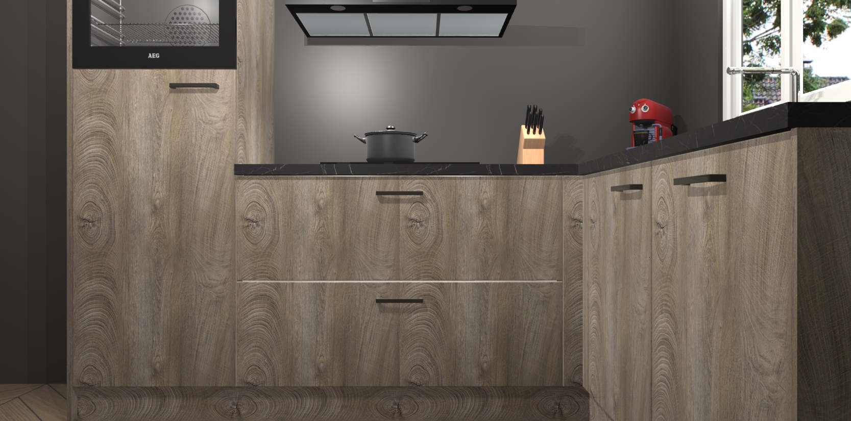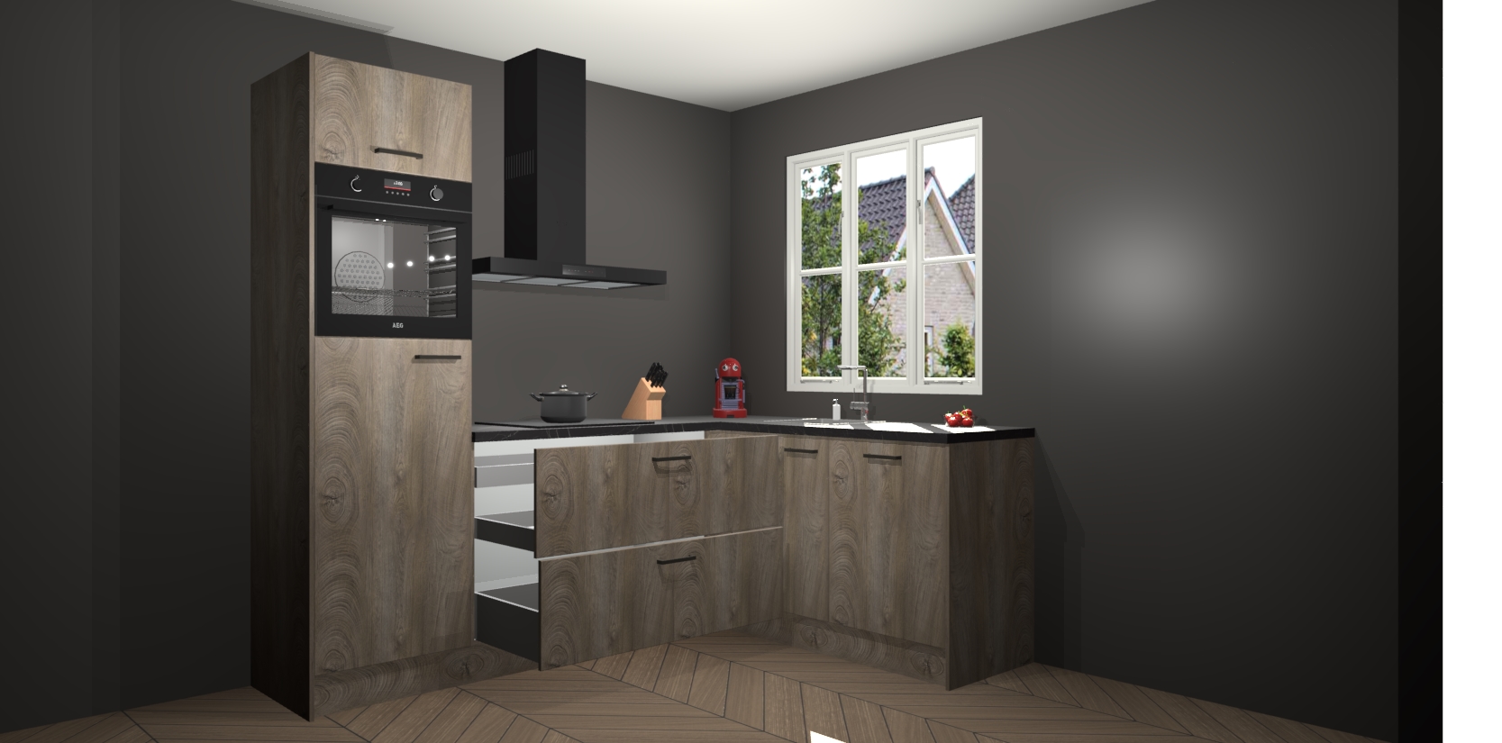 Dit model biedt u voldoende opbergruimte en vijf ingebouwde apparaten: een oven, inductiekookplaat, afzuigkap, vaatwasser en koelkast. Deze apparaten kunnen gemakkelijk worden geüpgrade naar AEG nadat u besteld heeft. De verschillende laden en kastjes bevatten softclose-deuren waardoor ze gezellig dichtvallen met een geruststellend helemaal geruisloos geluid. En dat is nog niet alles! We garanderen ook dat de prijs altijd laag blijft - dus haal nu uw Cantaro Eiken keuken Victoria terwijl het kan.