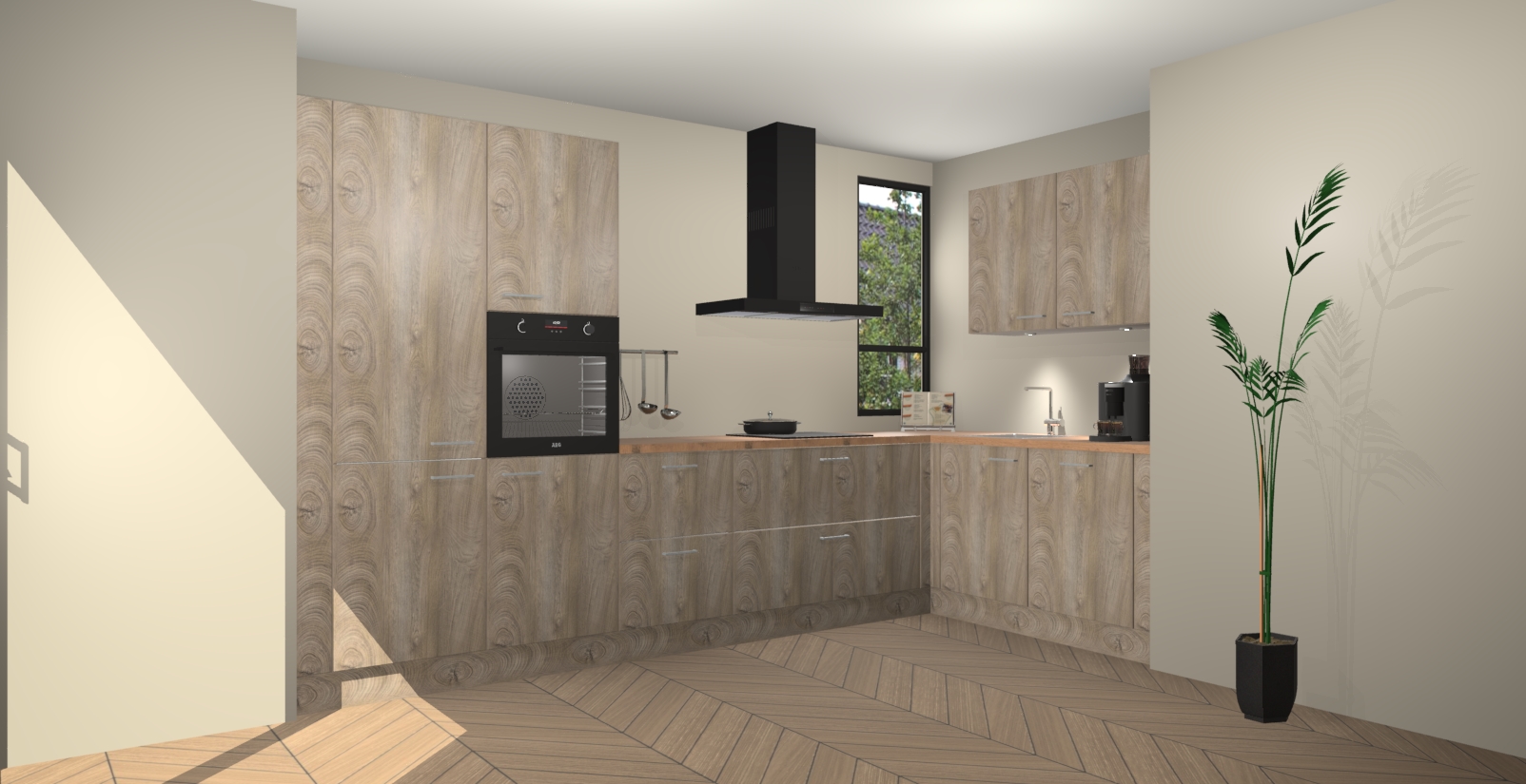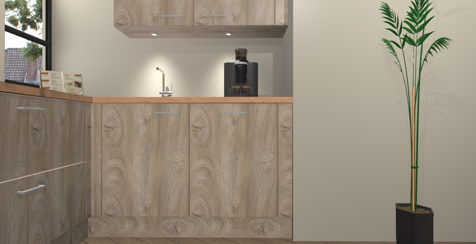 Welkom in uw nieuwe moderne keuken! Laat ons u voorstellen aan de Cantaro Eiken keuken Vlaanderen . Deze prachtige hoekkeuken straalt exclusiviteit en luxe uit als geen ander. Het strakke design, de tijdloze kleuren en het model maken van deze keuken een moderne klassieker. En met voldoende opbergruimte heeft deze keuken echt voor ieder wat wils.