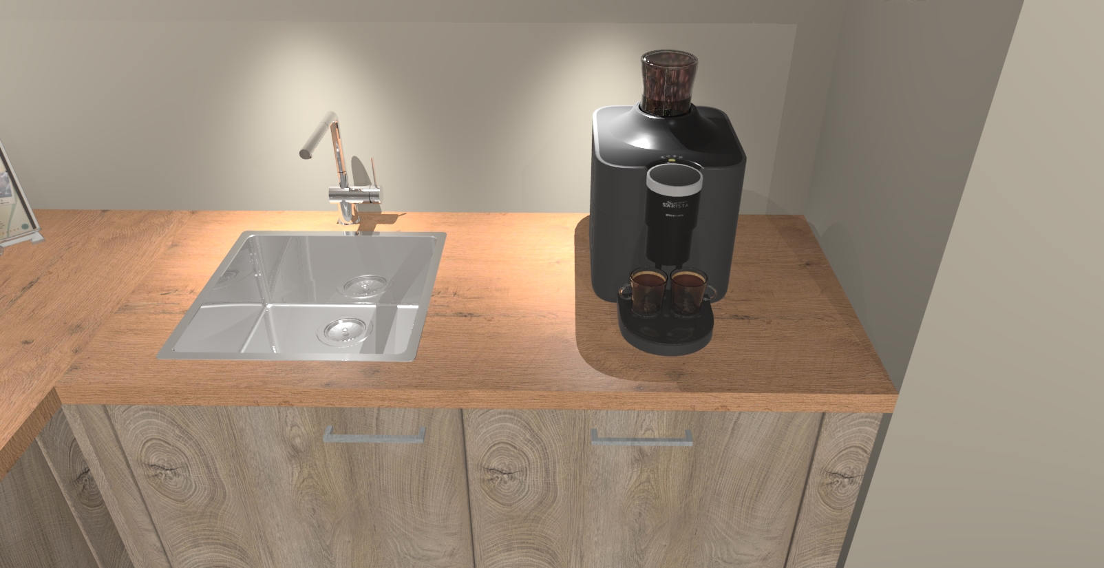 - De spoelbak is nog niet in gevreesd. Dit dient tijdens het werk gedaan te worden
