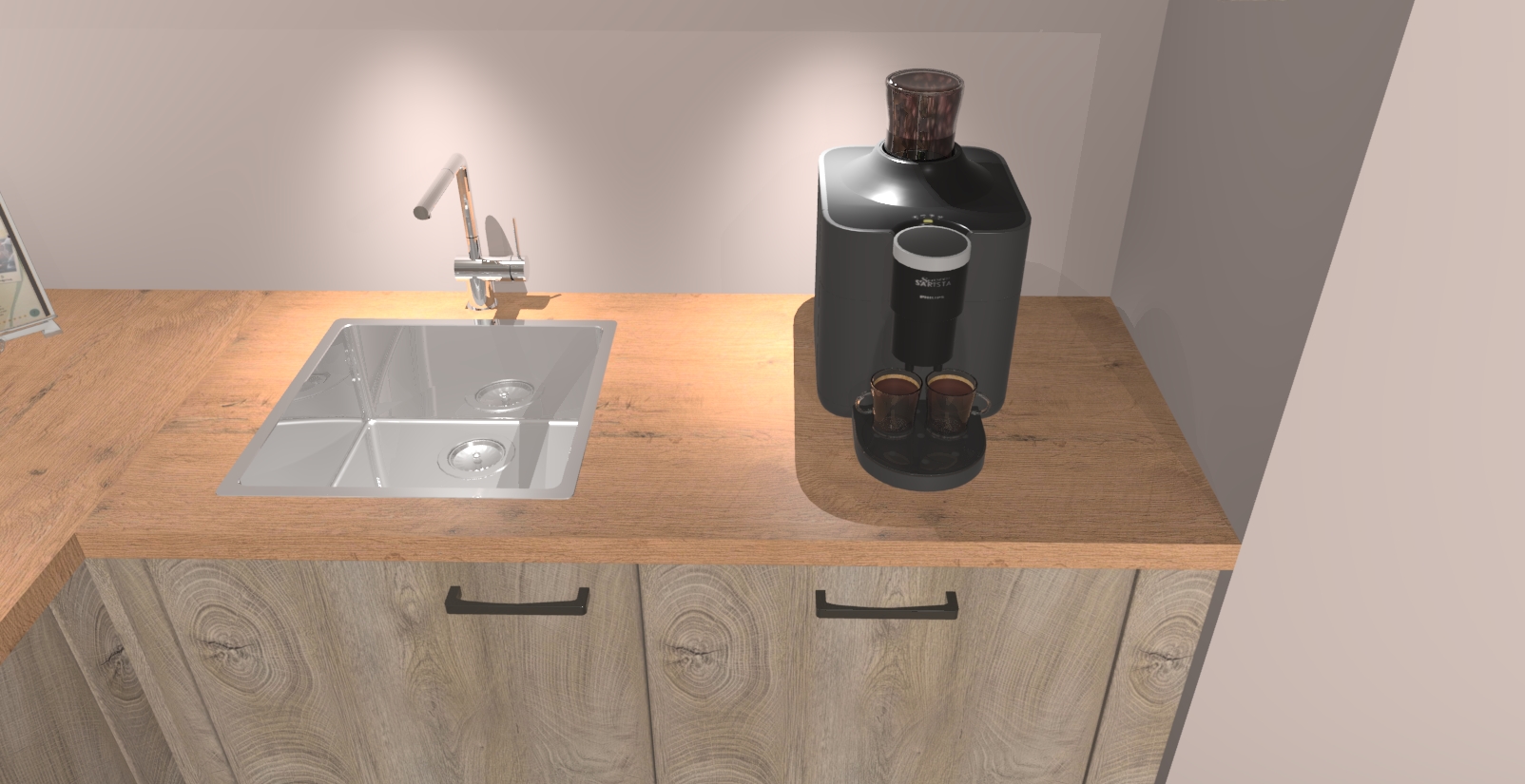 • De spoelbak is nog niet in gevreesd. Dit dient tijdens het werk gedaan te worden