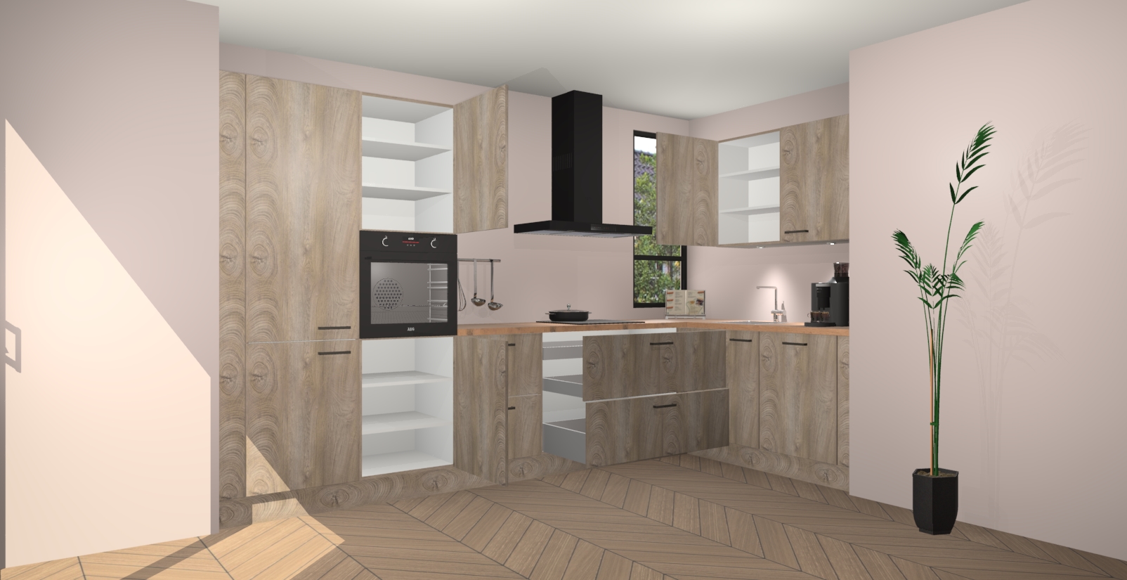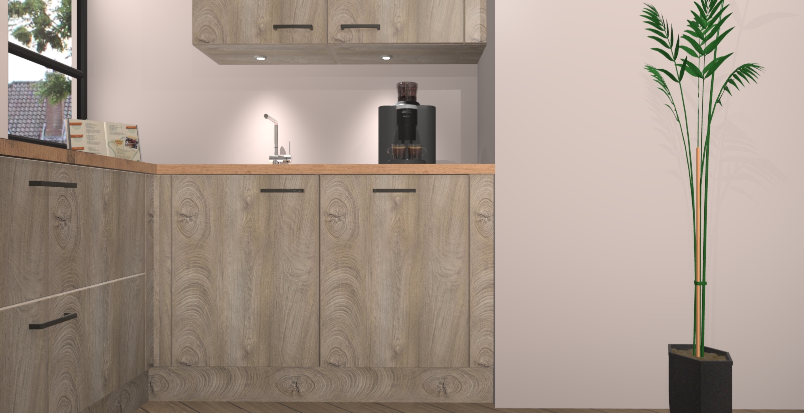 Welkom in uw nieuwe moderne keuken! Laat ons u voorstellen aan de Cantaro Eiken keuken Vlaanderen . Deze prachtige hoekkeuken straalt exclusiviteit en luxe uit als geen ander. Het strakke design, de tijdloze kleuren en het model maken van deze keuken een moderne klassieker. En met voldoende opbergruimte heeft deze keuken echt voor ieder wat wils.
