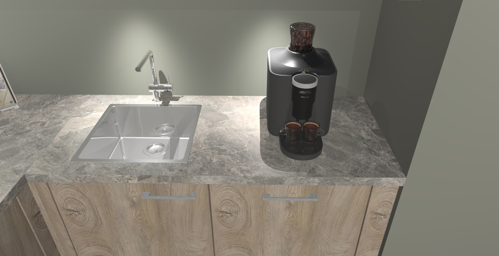 • De spoelbak is nog niet in gevreesd. Dit dient tijdens het werk gedaan te worden